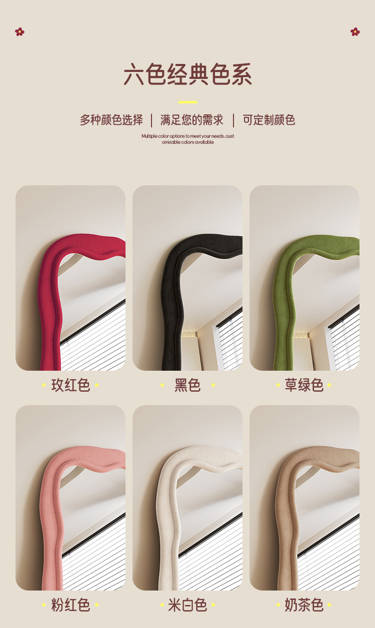 retro red wave full-length mirror simple floor mirror shaped dressing mirror living room bedroom dopamine art mirror
