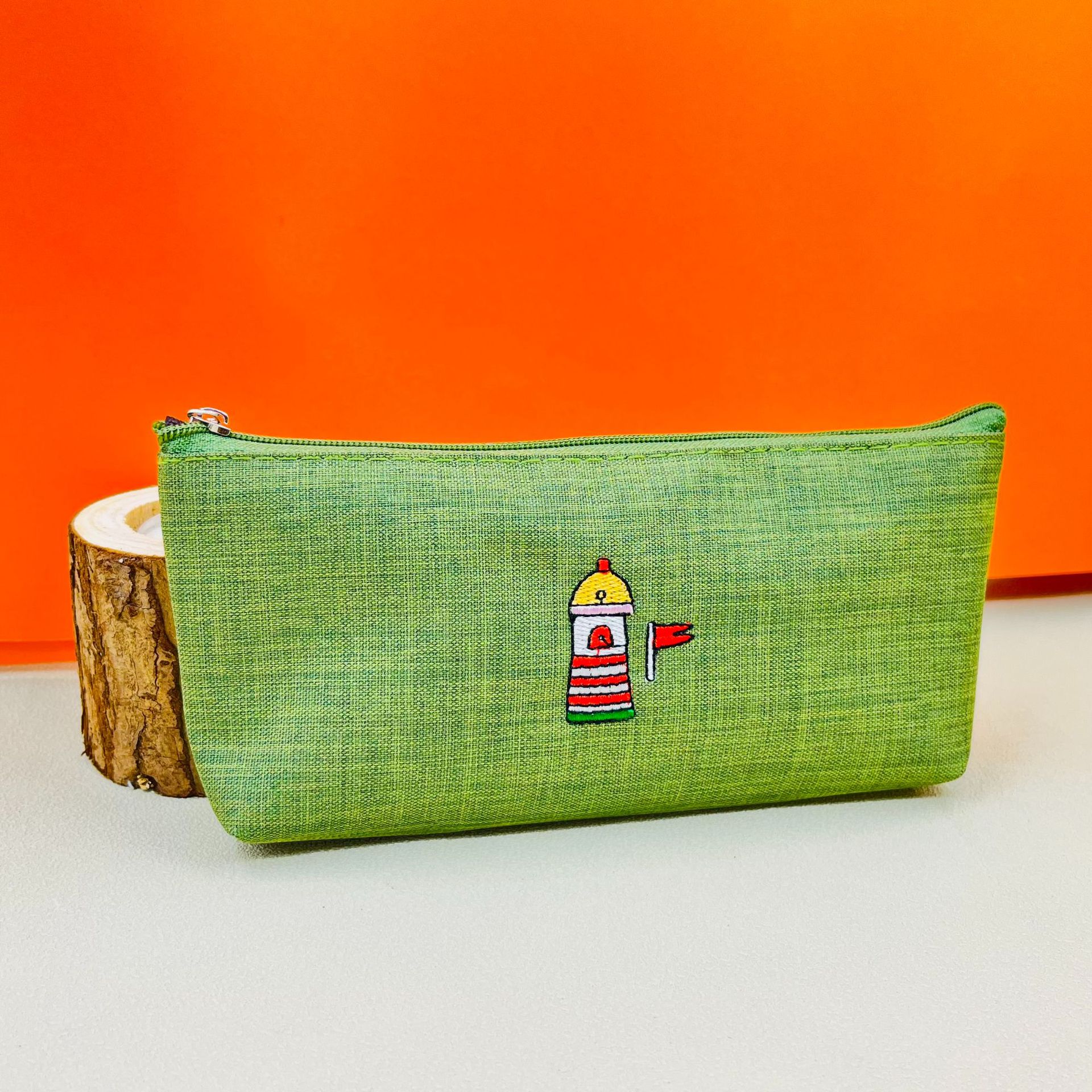 yellow green small house embroidery