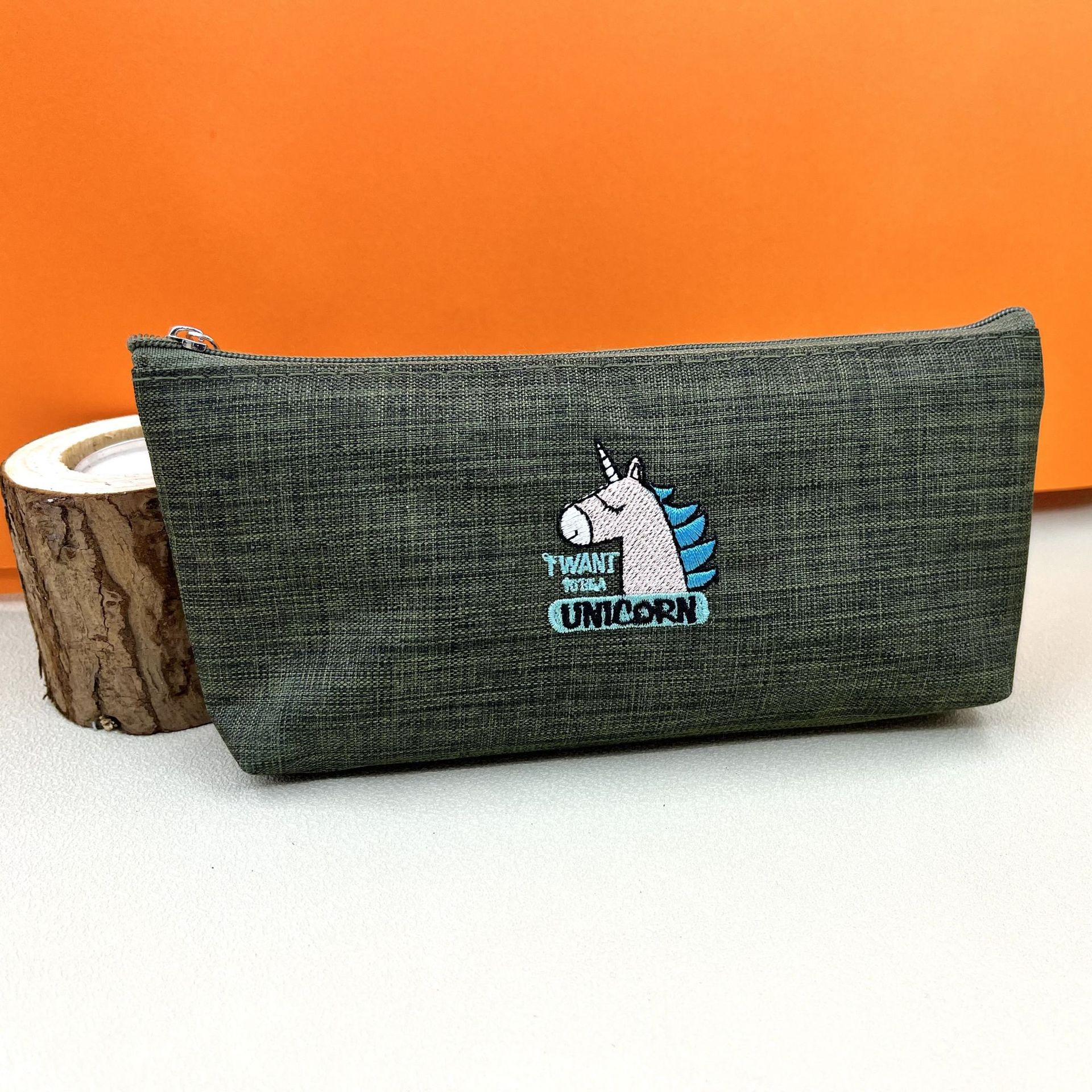 olive green unicorn embroidery
