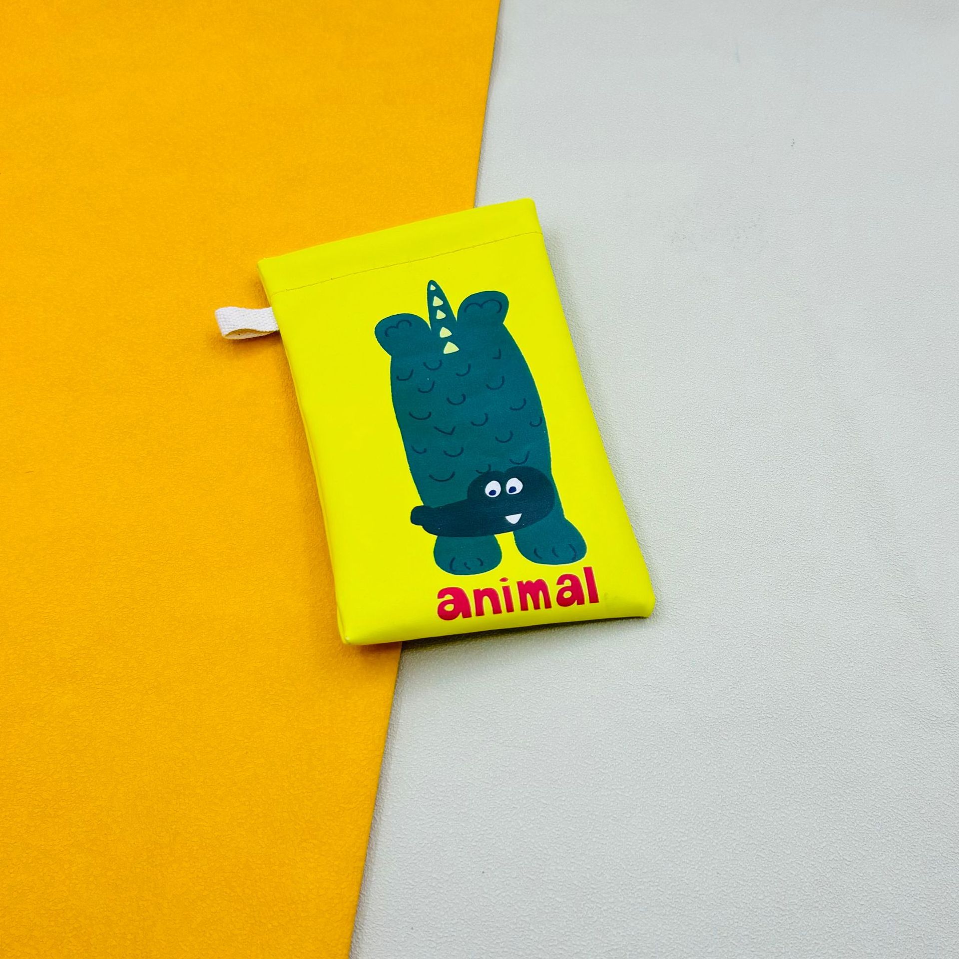 yellow background green small animal