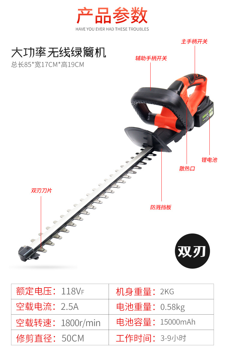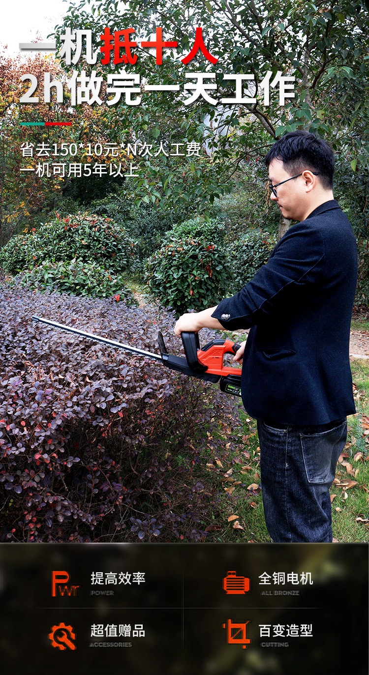 newly upgraded family 6.0ah hedge trimmer 2 electricity 1 charge