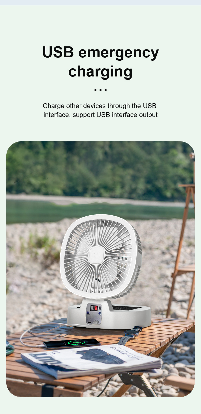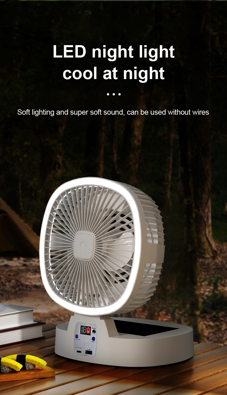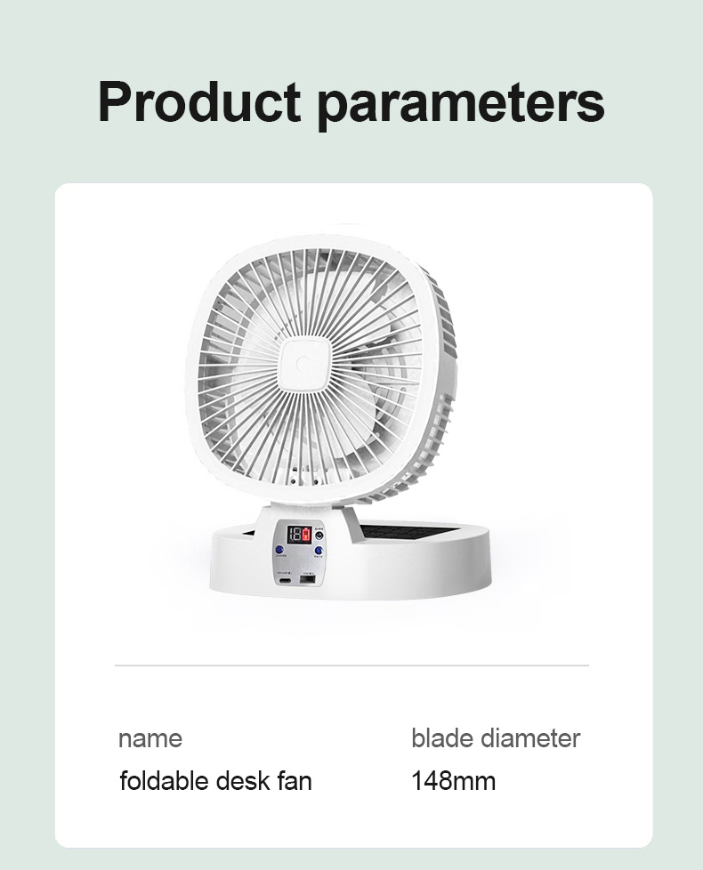 Name: New Solar-Powered Folding Fan - Charging Remote Control