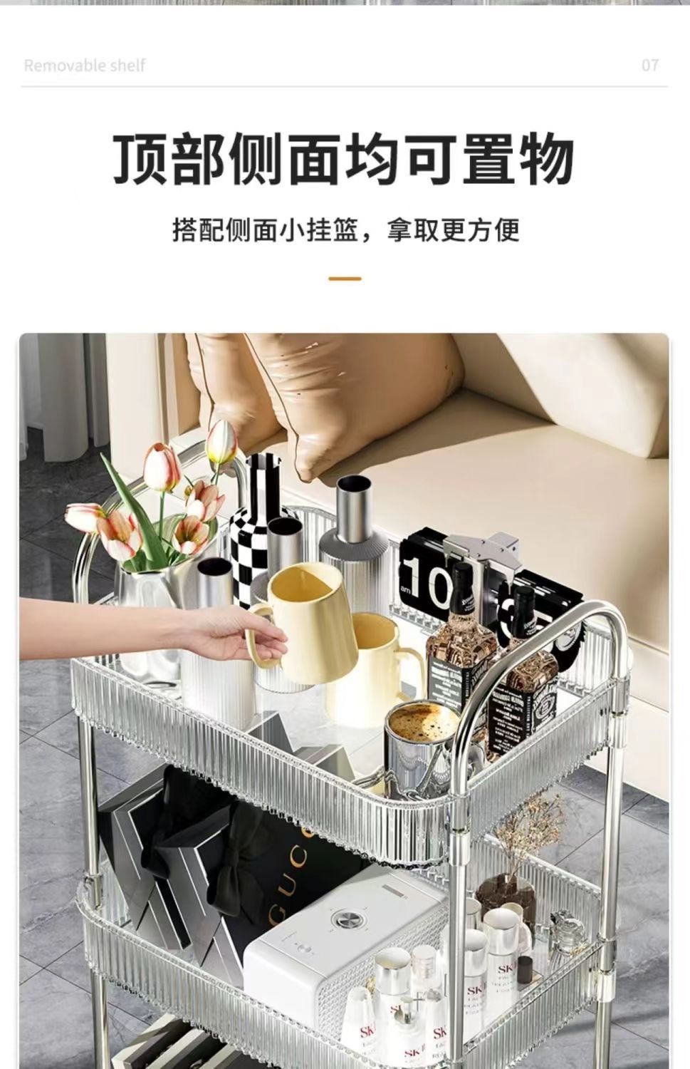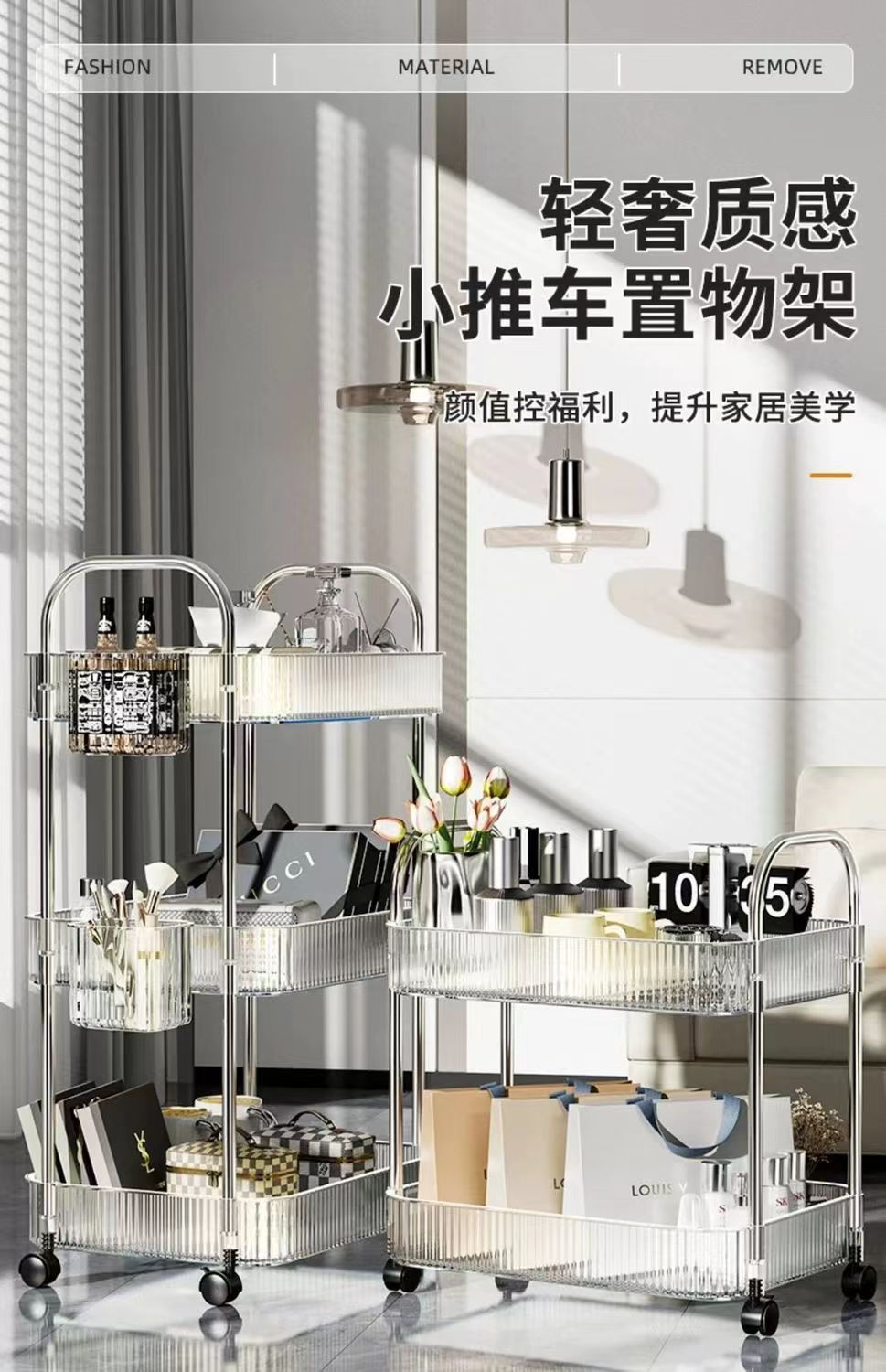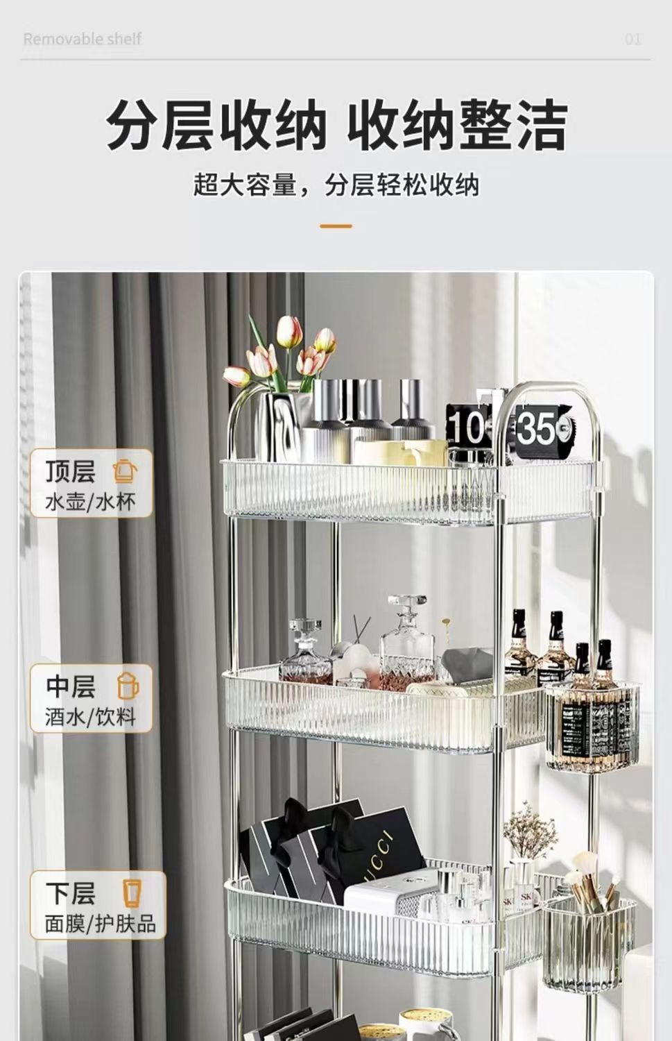 transparent acrylic trolley rack bedside snack rack bedroom floor movable cosmetic storage shelf