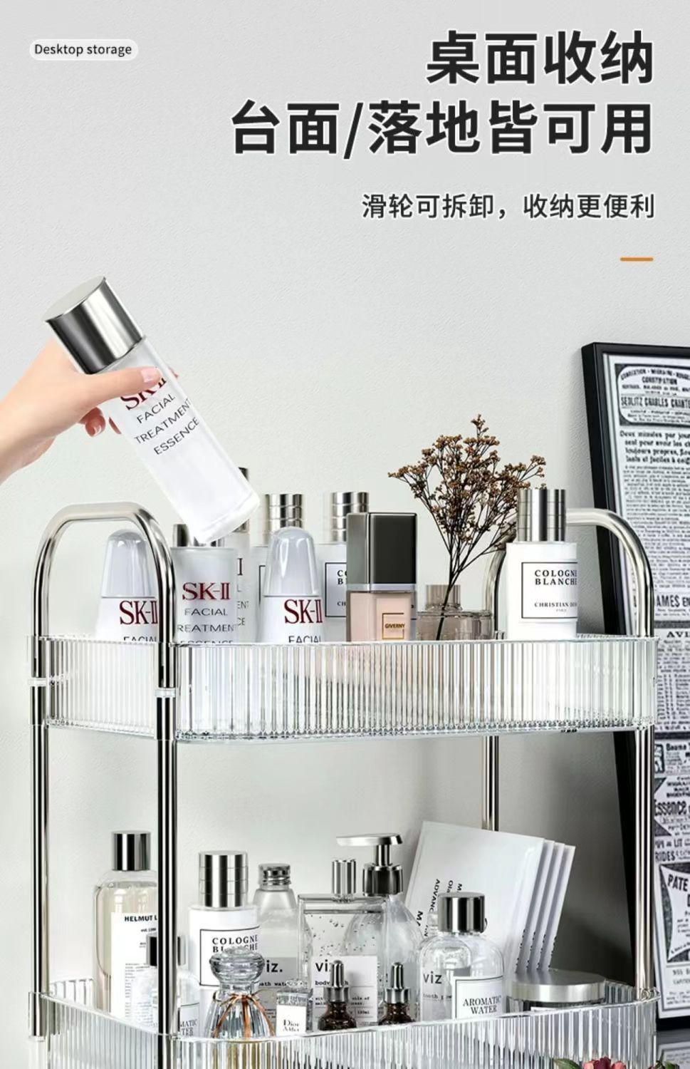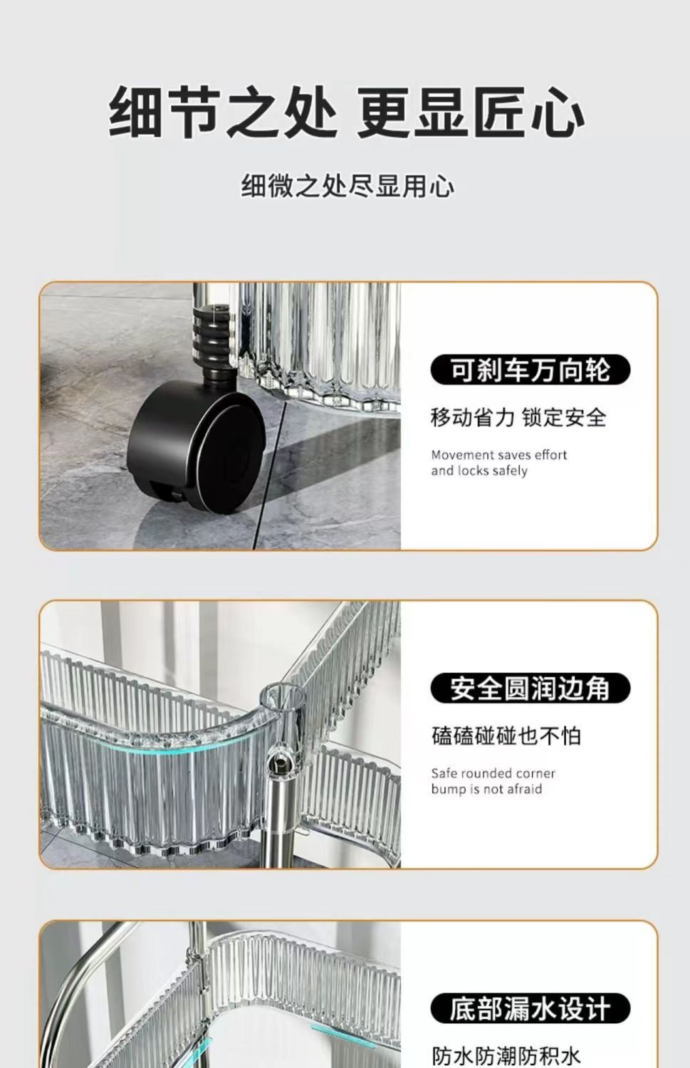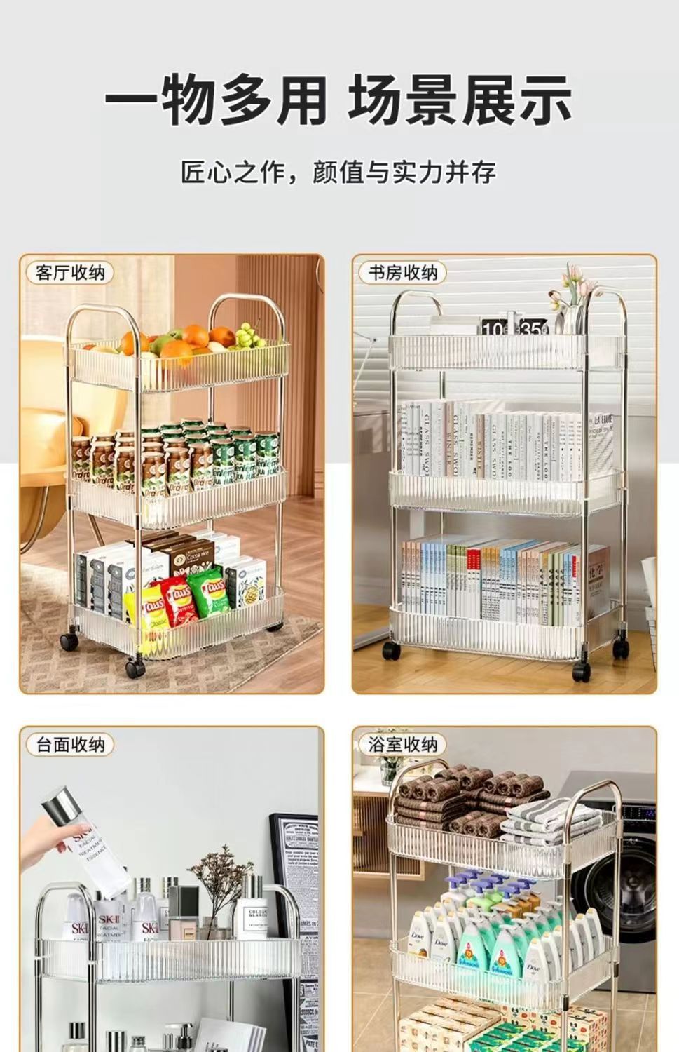 transparent acrylic trolley rack bedside snack rack bedroom floor movable cosmetic storage shelf
