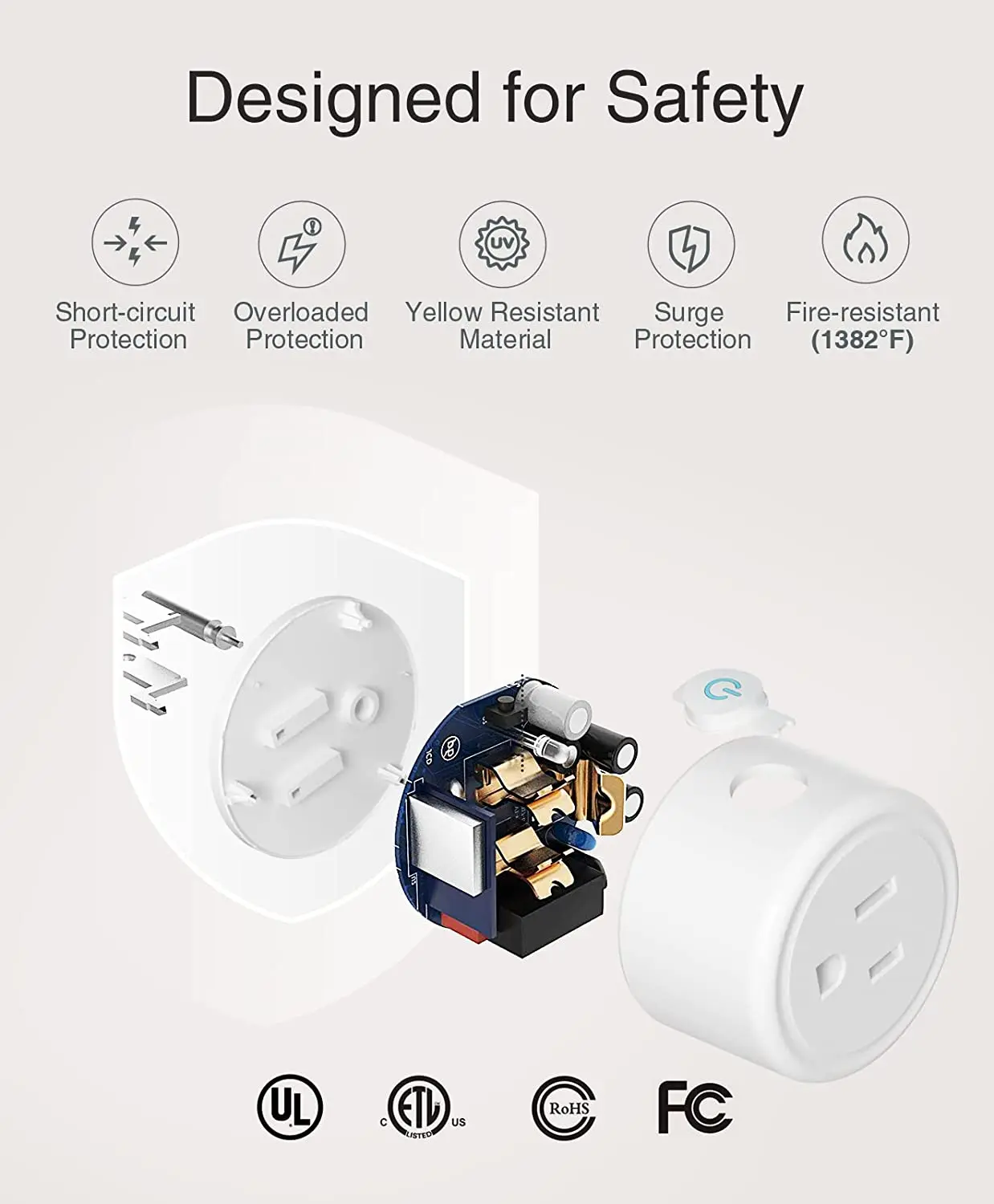 Design, Quick Connect:Simply plug in and keep the smart socket connected to a stable 2.4GHz network, and the improved WiFi technology allows you to quickly connect and maintain a stable connection.