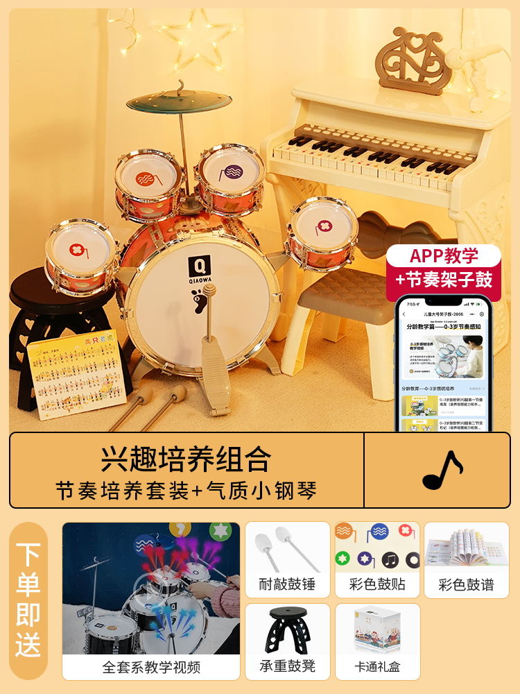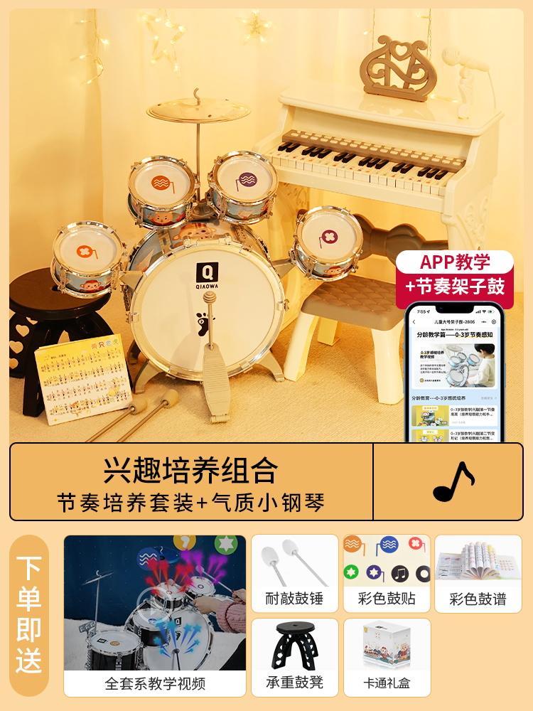 兴趣培养组合:节奏培养套装粉+气质白小钢琴