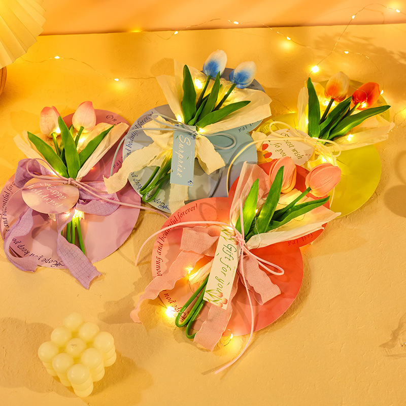 (含灯串)葫芦形粉色郁金香含手提袋