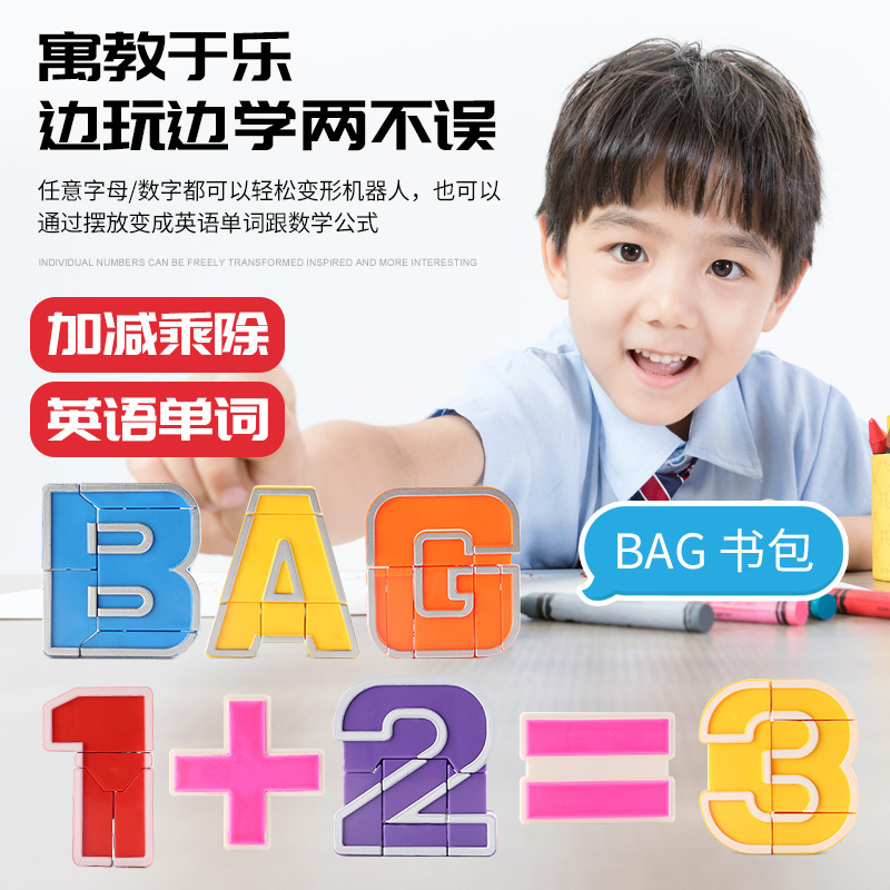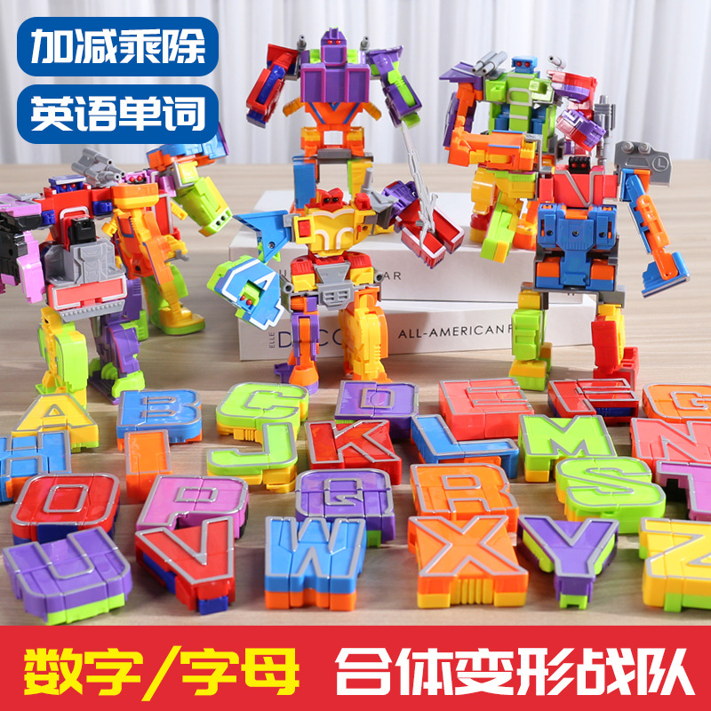 cross-border deformable letters children's educational digital building blocks combination robot diy assembled toys early education enlightenment