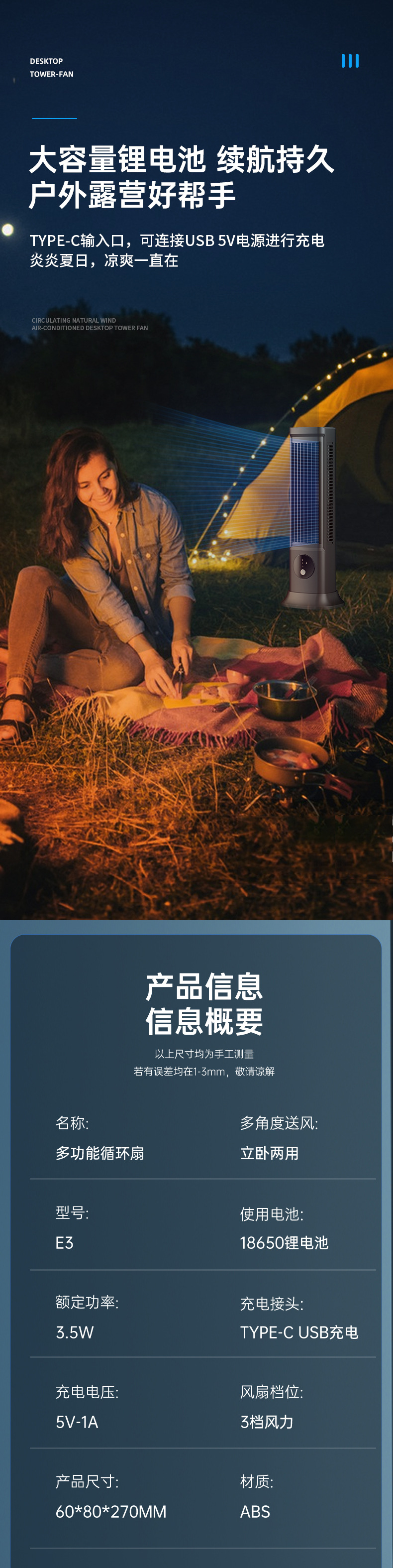 electronic fan blue rechargeable