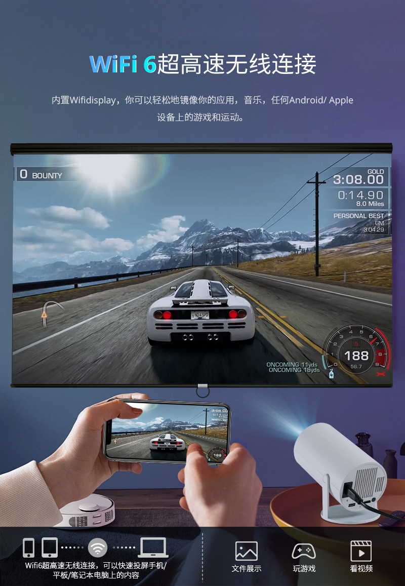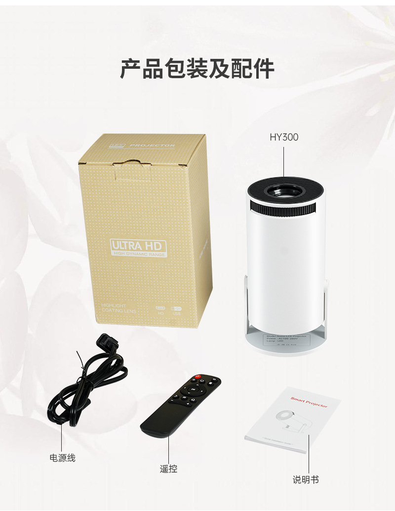 foreign trade cross-border barrel hy300 projector portable home office 4k ultra hd wireless projector