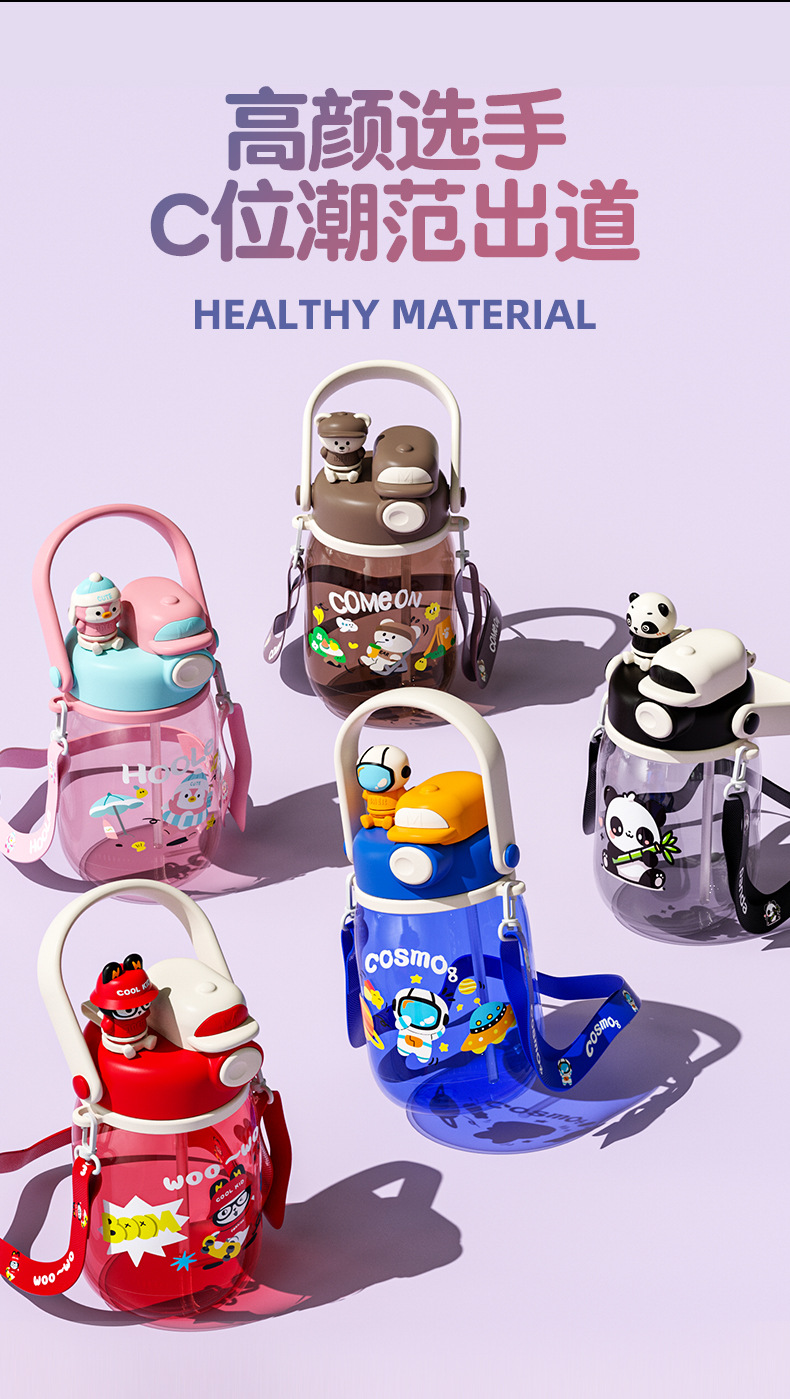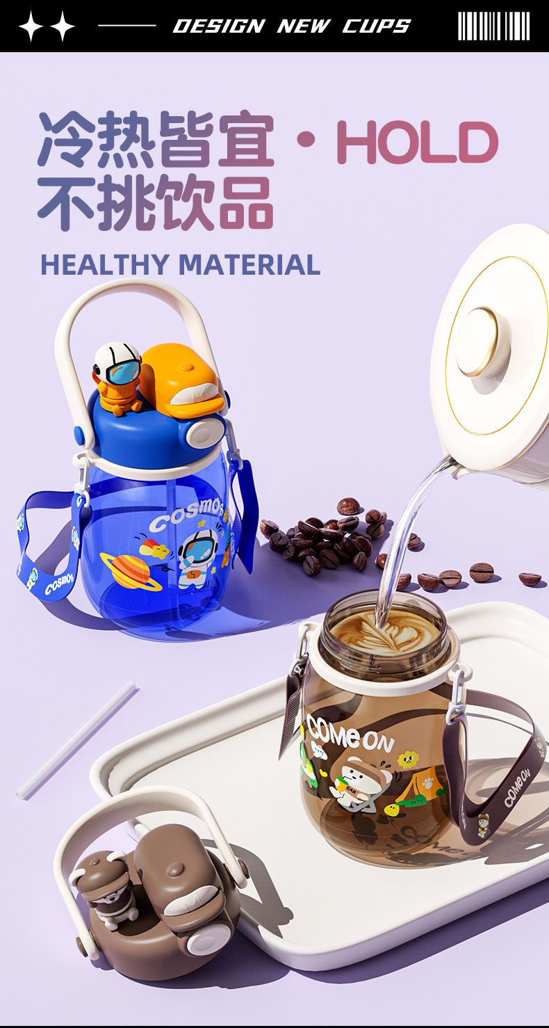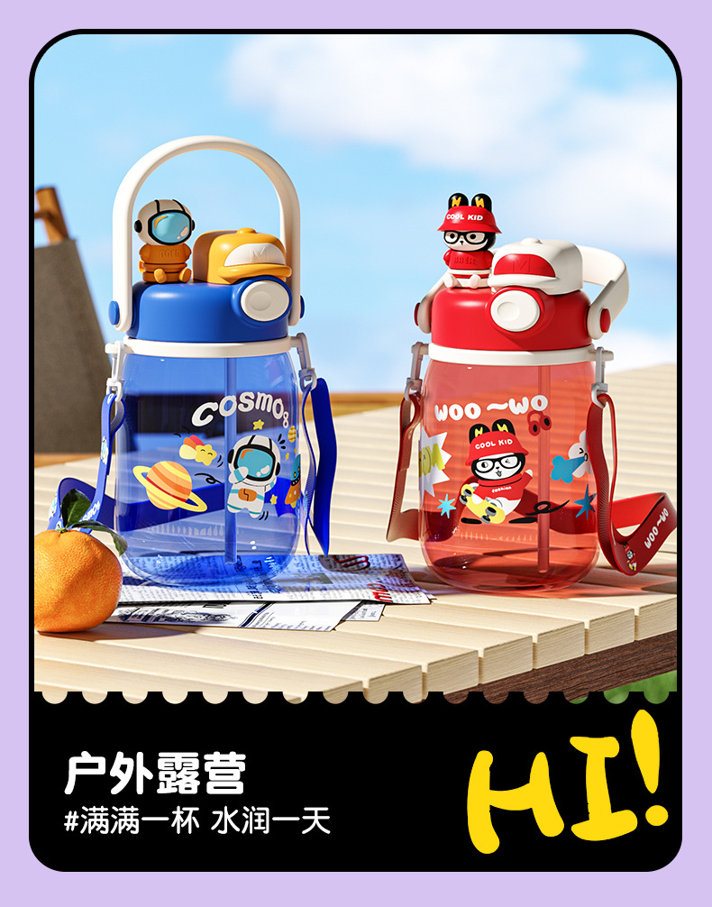 cartoon double drinking cup cute summer portable children's straw cup cup with straw portable outdoor good-looking large capacity plastic cup