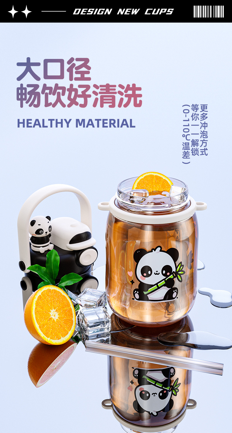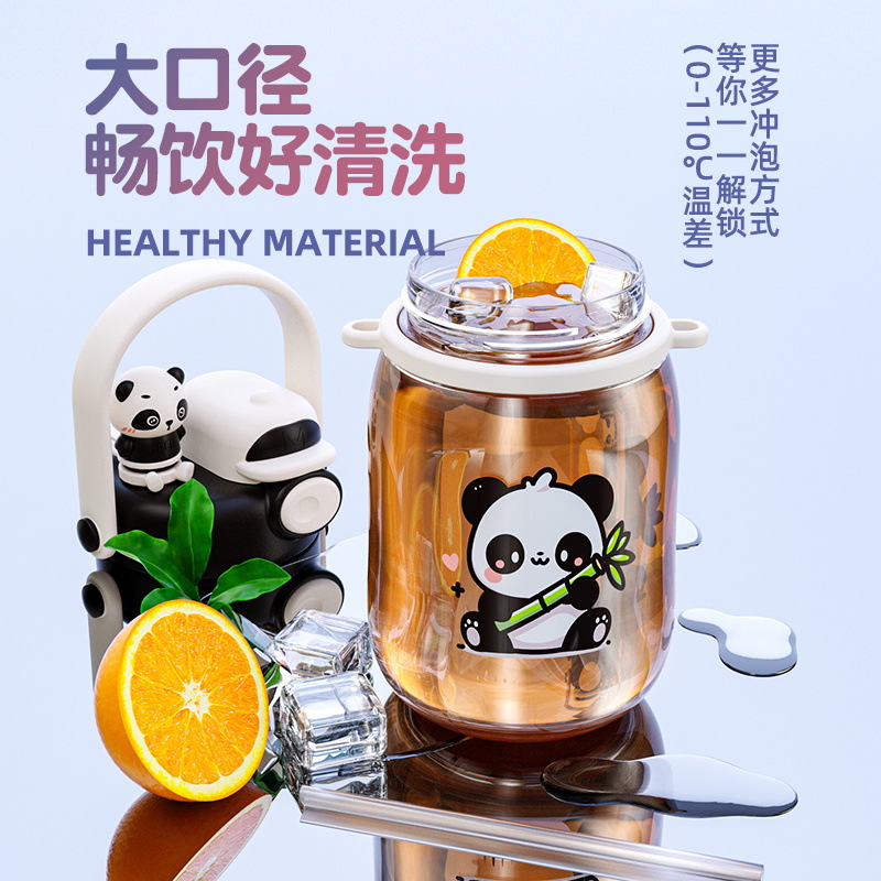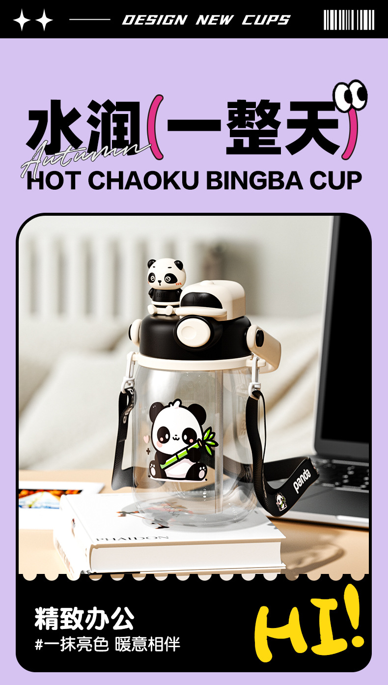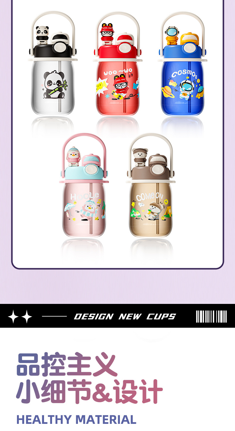cartoon double drinking cup cute summer portable children's straw cup cup with straw portable outdoor good-looking large capacity plastic cup