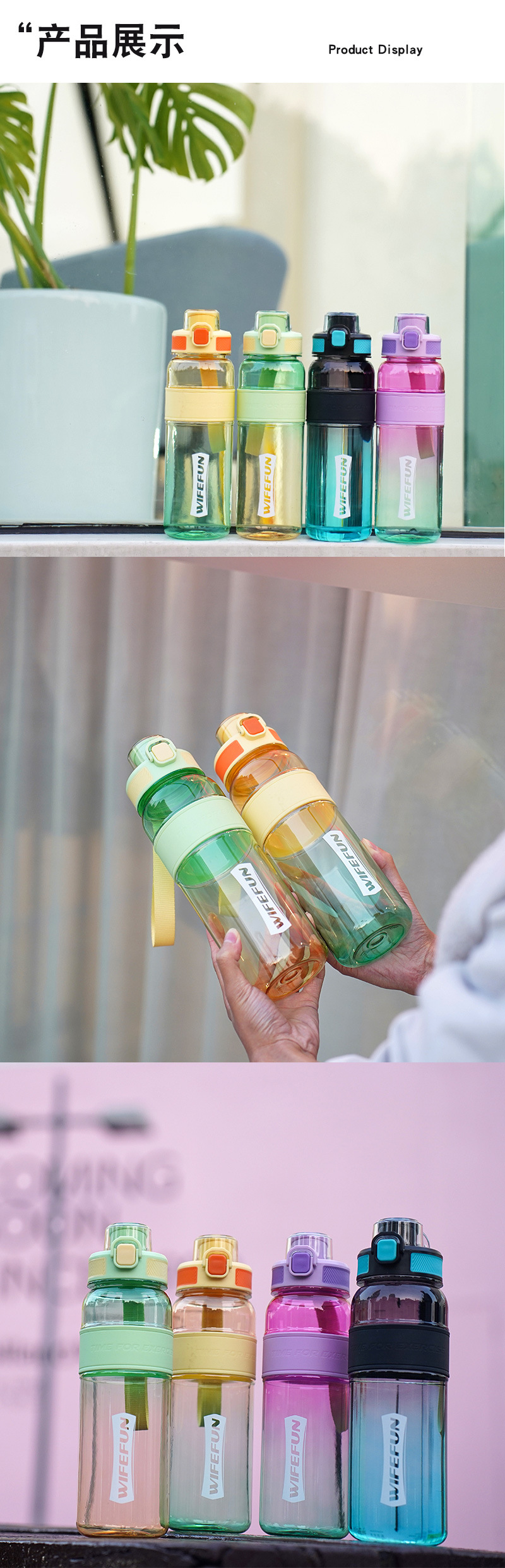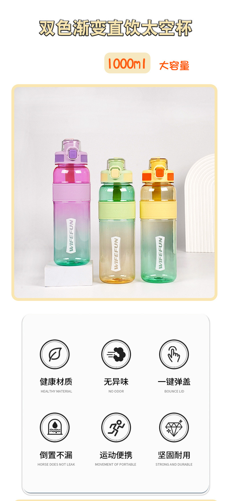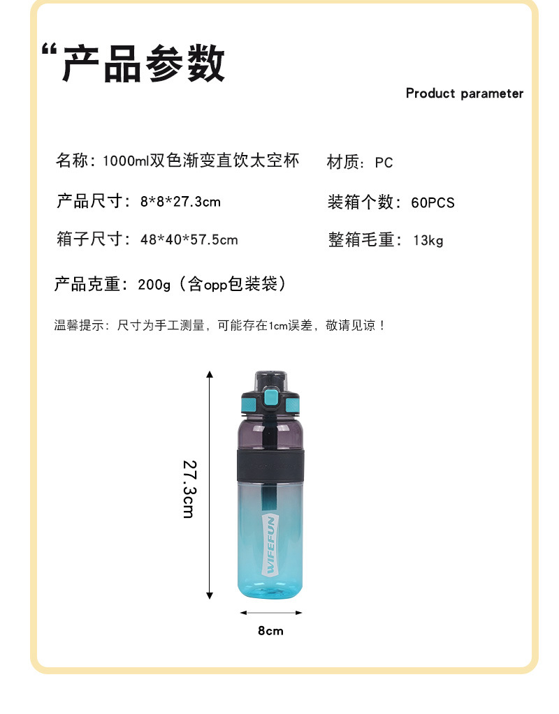 oz transparent plastic sports bottle uv coated colorful 1l direct drink plastic cup cross-border lifting rope outdoor sports bottle