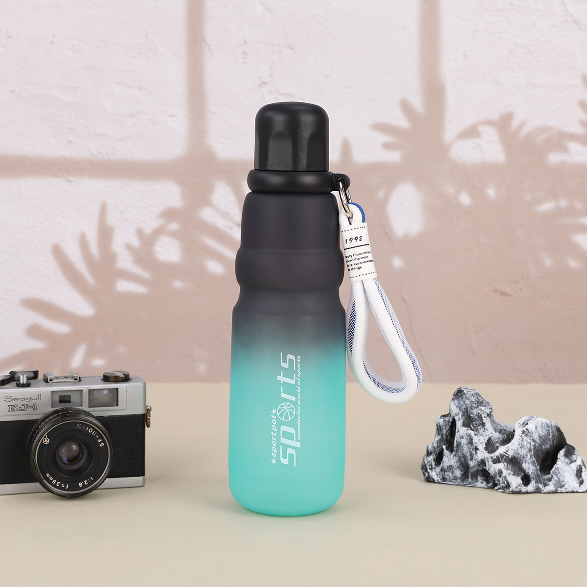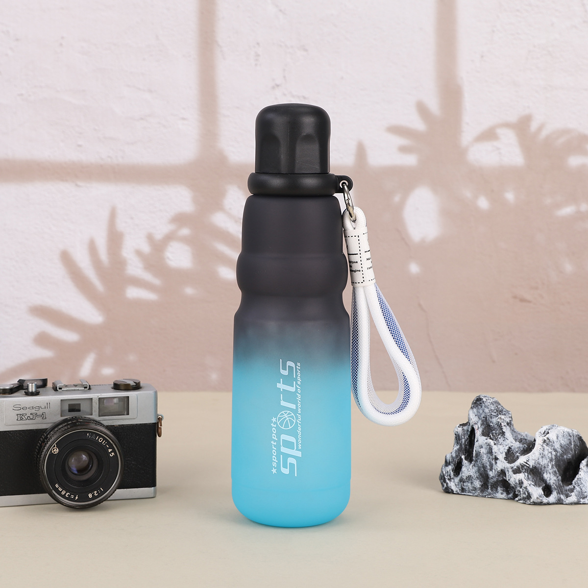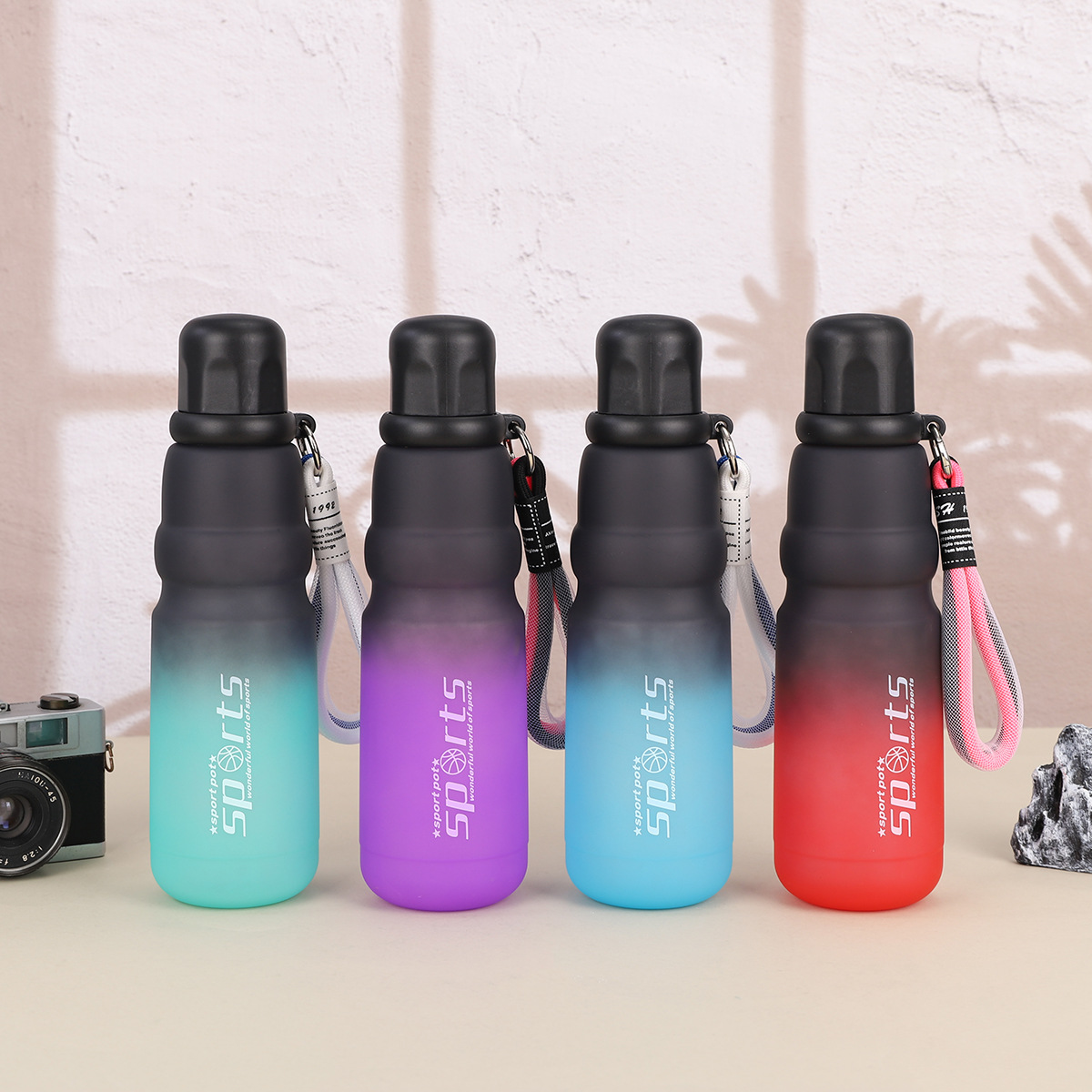 cross-border good-looking gradient plastic cup with rope handle outdoor sport climbing cycling kettle large-capacity space bottle