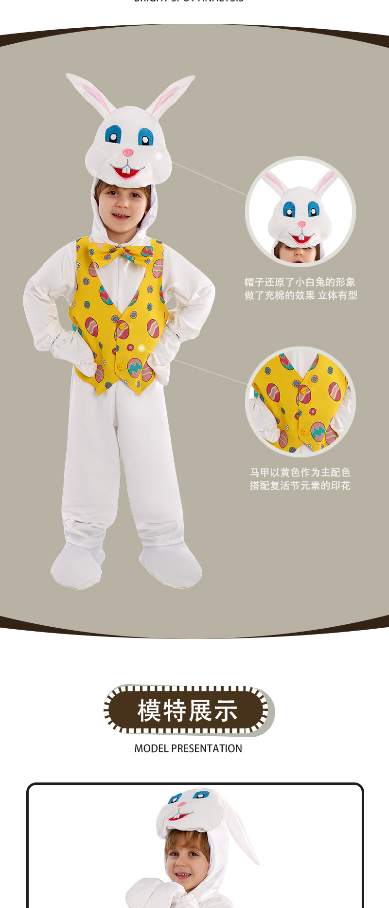 Are you still struggling to choose what style of clothes for Easter? Easter is one of the most important religious festivals in the Christian calendar and also one of the most challenging to choose clothing for. Because Easter not only means religious rebirth, but it's also a symbol of the coming of spring, we're about to experience nature, rebirth (and get chocolate!). This bunny costume caters to the classic Easter style, paired with a lively and vibrant vest set, as well as Easter egg costumes and super sunflower outfits, marking the beginning of a new birth. With so many styles to choose from this year, hurry up and dress your child in Easter costumes to celebrate the arrival of spring!