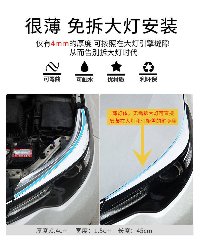start scanning automobile led daytime running lamp external ultra-thin light-guide strip two-color streamer led turn signal driving light bar