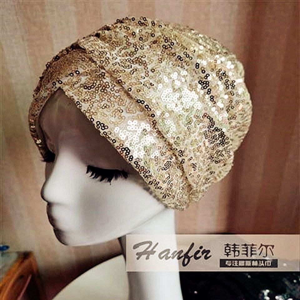 black paillette headband cap