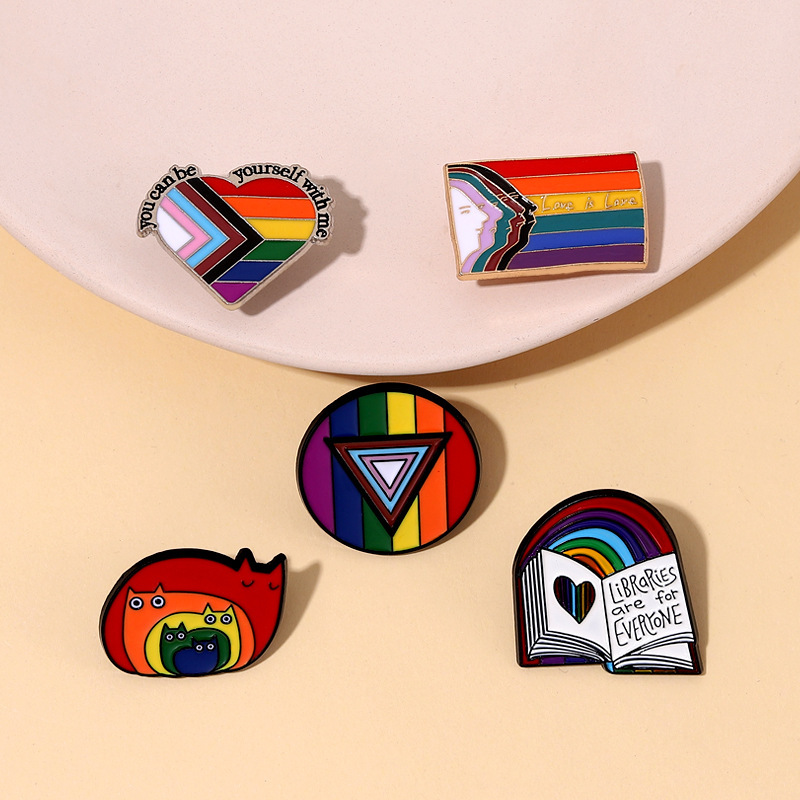 Foreign Trade New Product Creative Rainbow Pattern Series Alloy Brooch Love Book English Letters Bag Accessories Badge