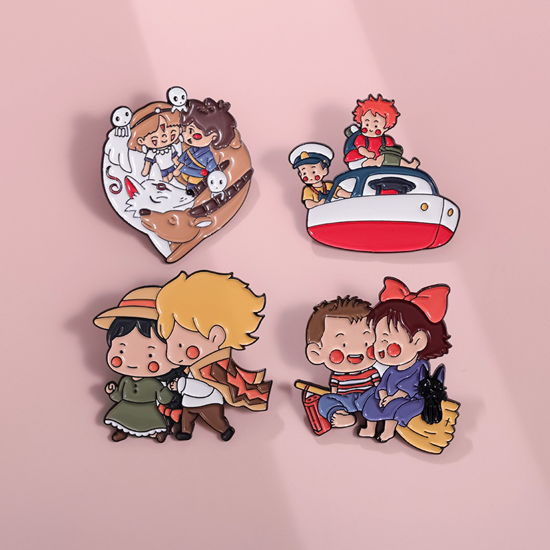 Exquisite Two-Dimensional Cartoon Animation Peripheral Character Cute Girl Pattern Alloy Brooch Clothes and Bags Accessories Bule