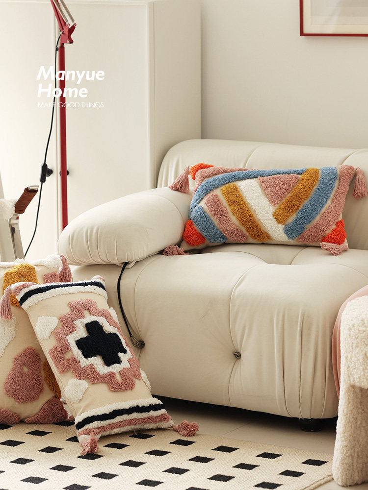 Jujia Morocco Tufted Pillow Pillow Cover Nordic Homestay Sofa Backrest Tassel Bedside Cushion with Core
