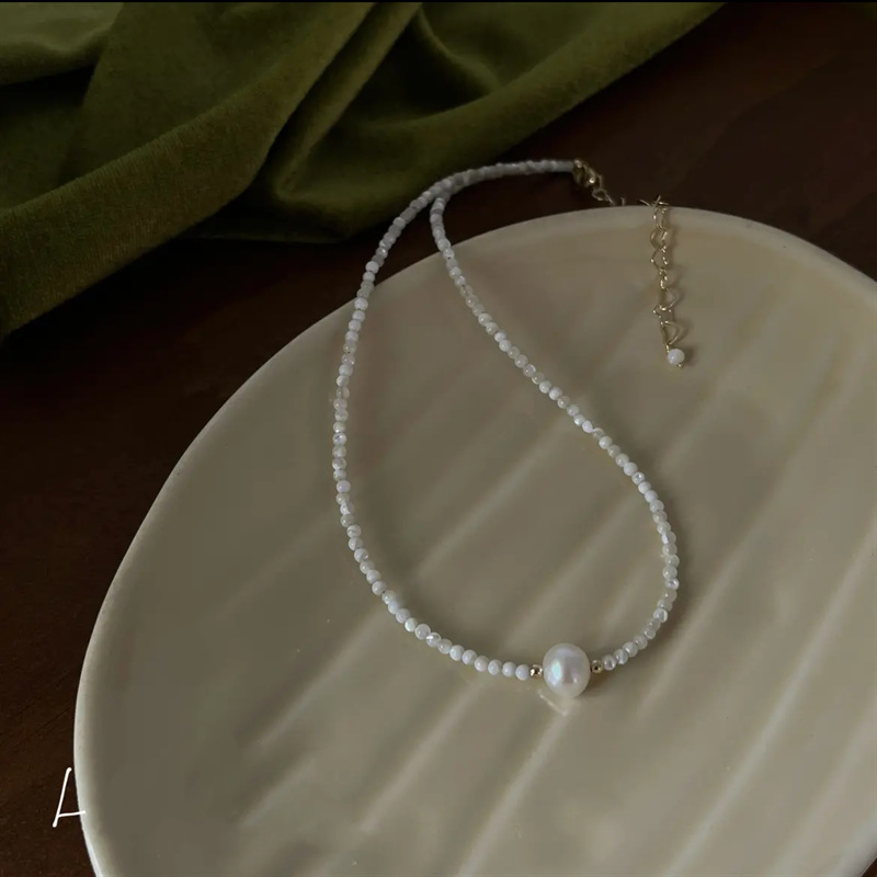 freshwater pearl white lip shell necklace