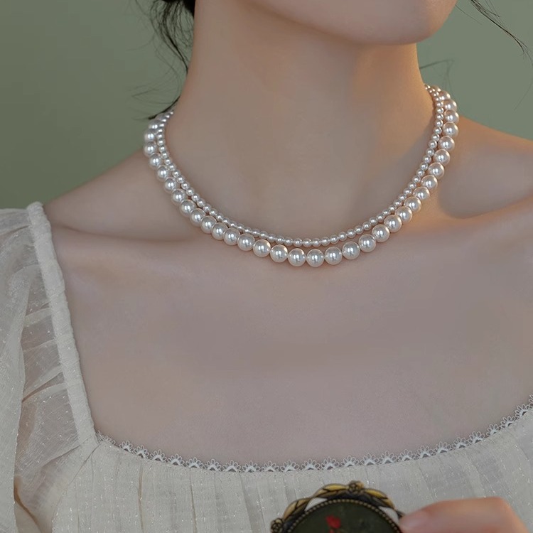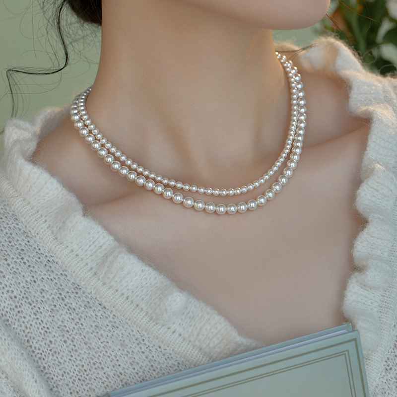 double layer 4 + 6mm glass pearl necklace