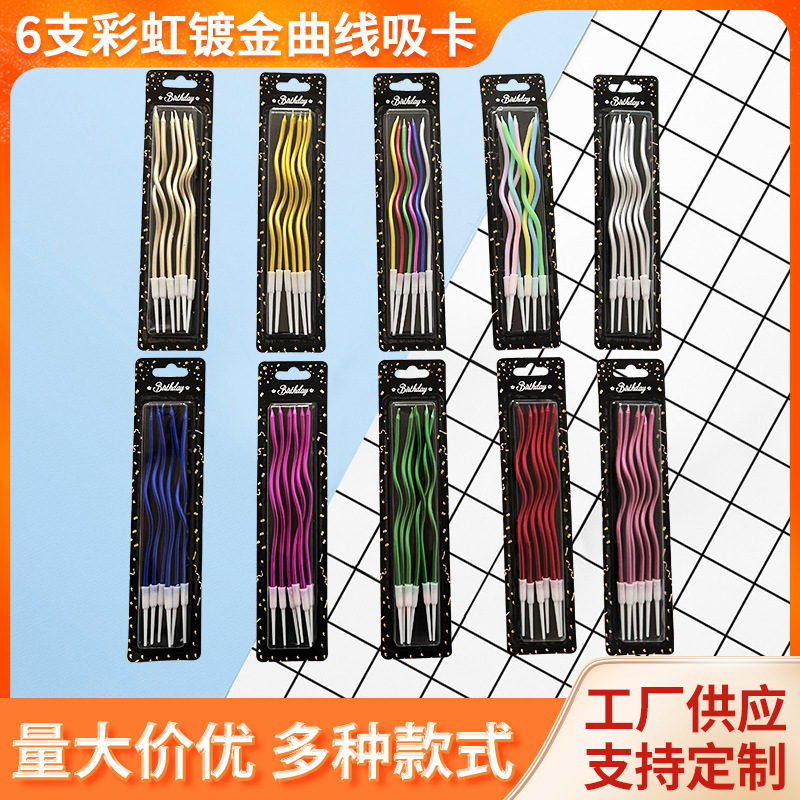 birthday cake decoration card internet celebrity colorful creative thread gold plated curve candle rainbow curved birthday candle