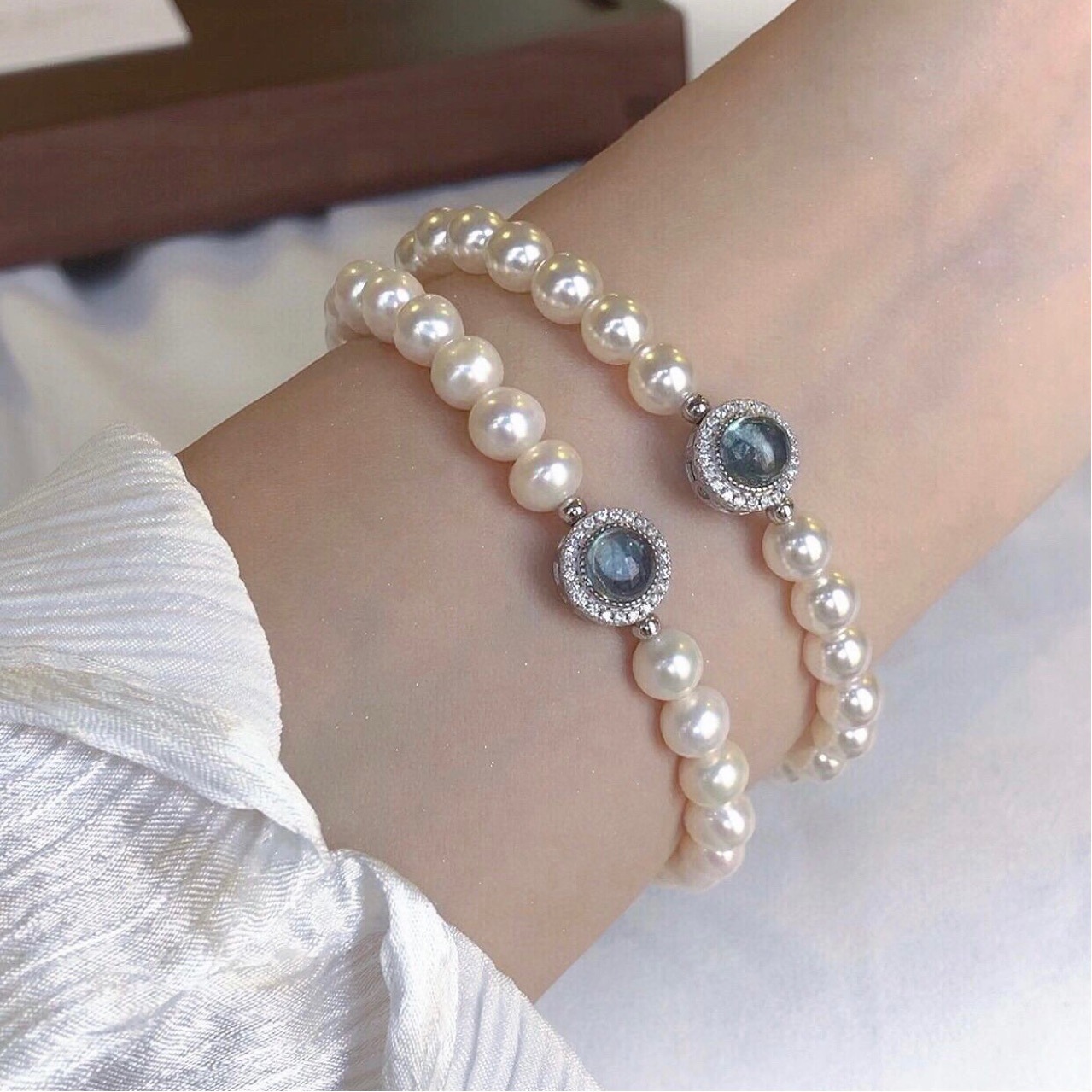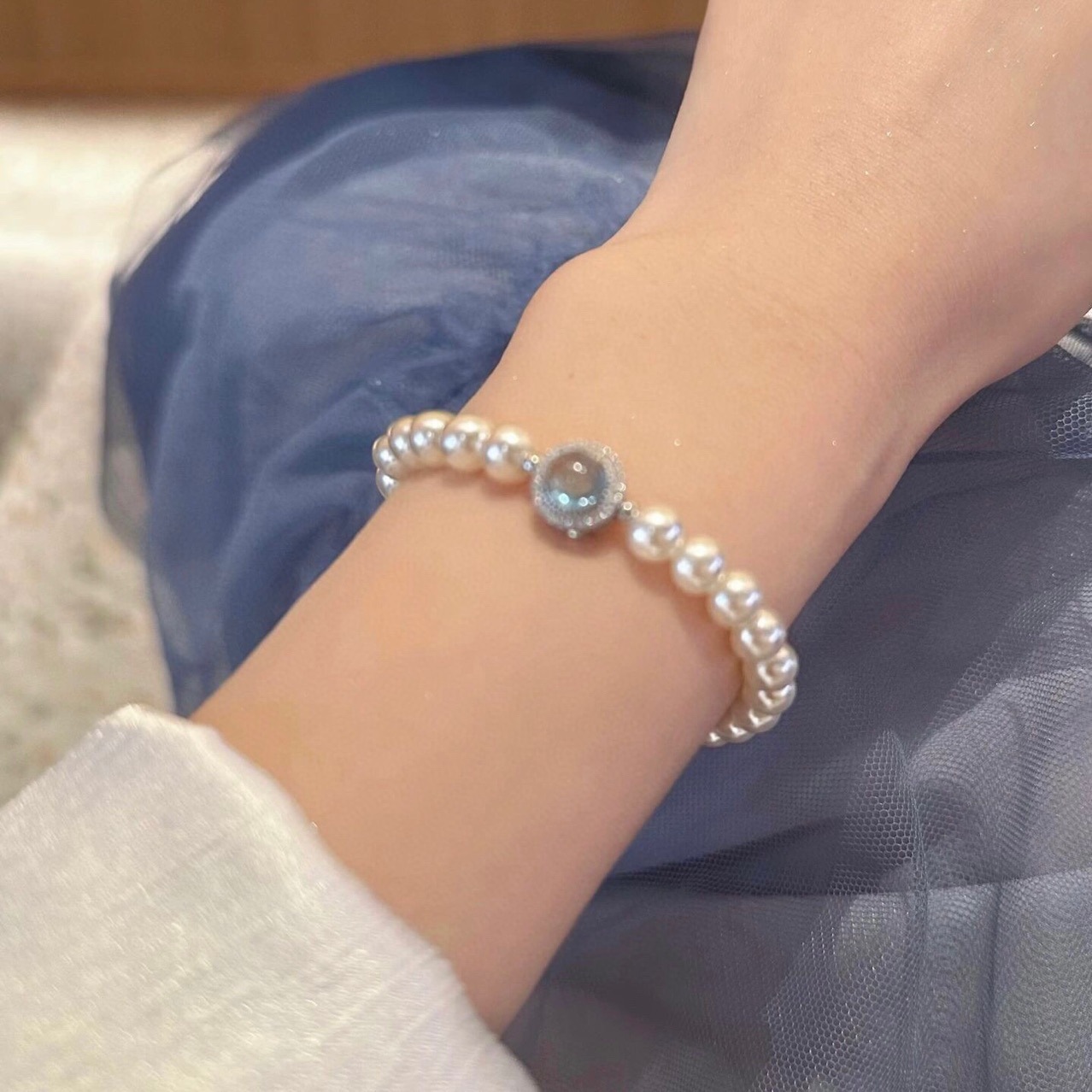 shijia pearl aquamarine elastic string model