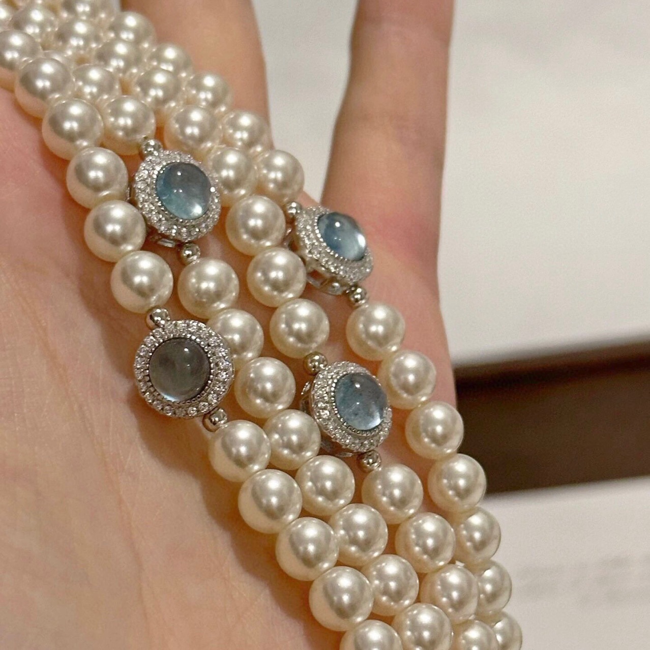 shijia pearl aquamarine extension chain