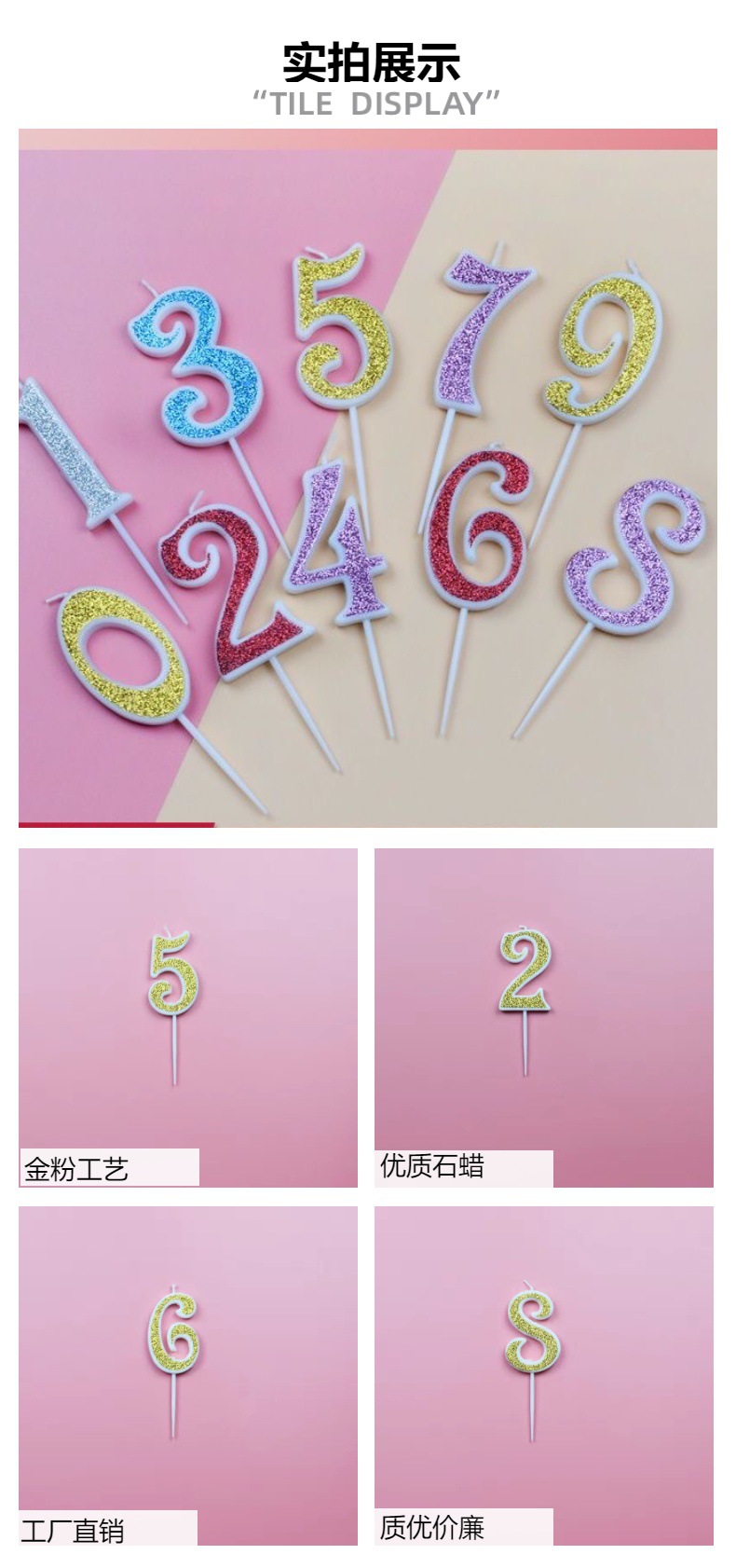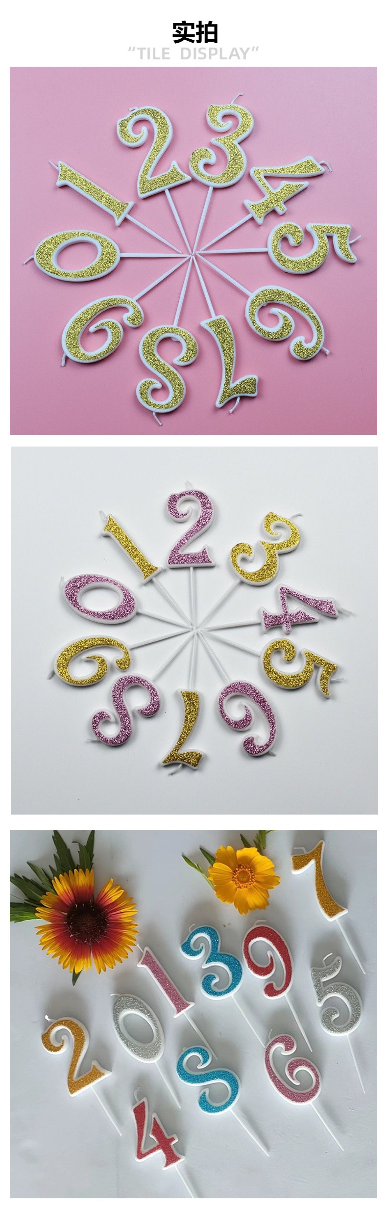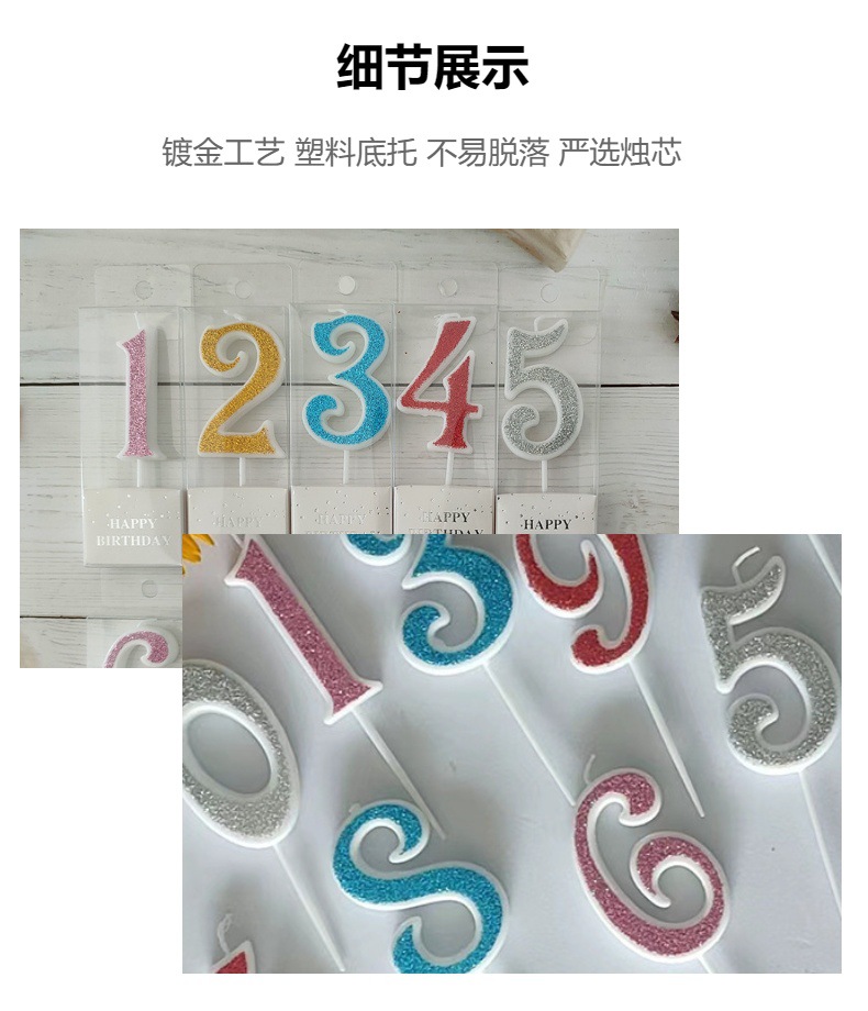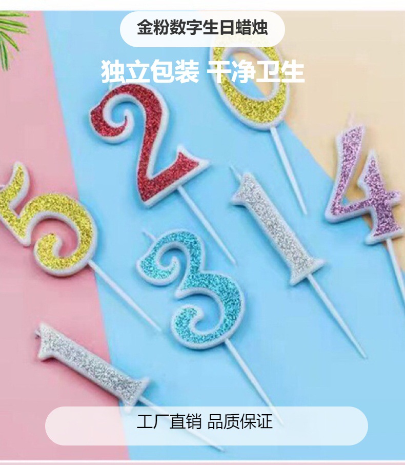 birthday candle gold powder digital candle dessert cake decoration candle party factory direct gold powder digital candle