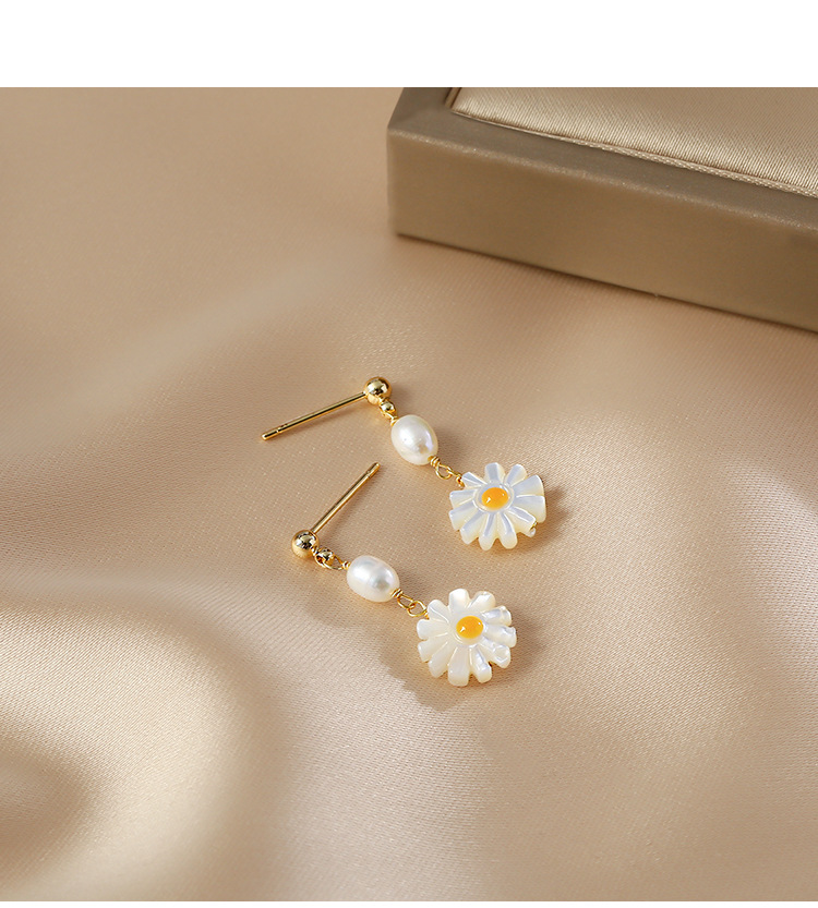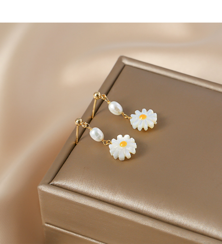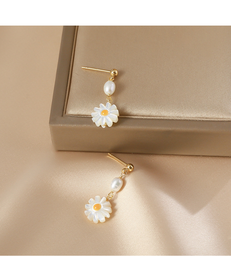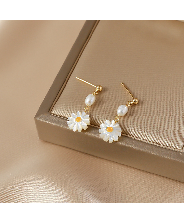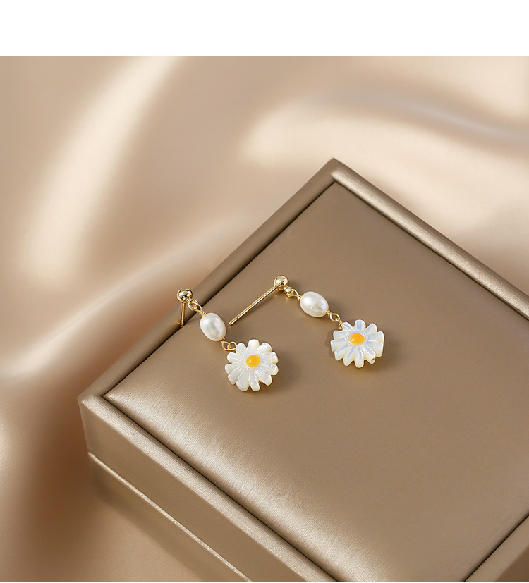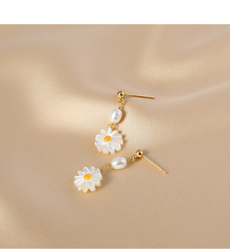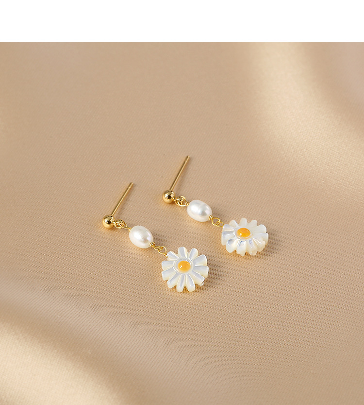 freshwater pearl shell daisy earrings