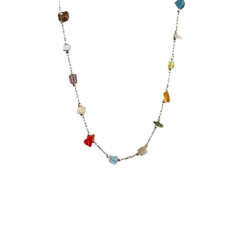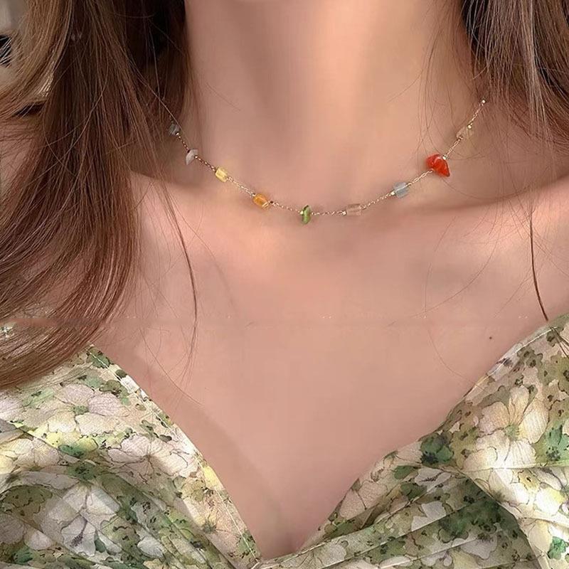 mixed color stone clavicle chain (random color)