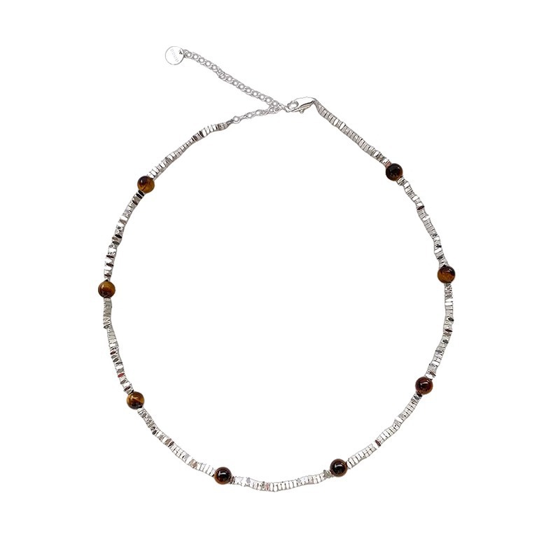 small pieces of silver tigereye stitching necklace