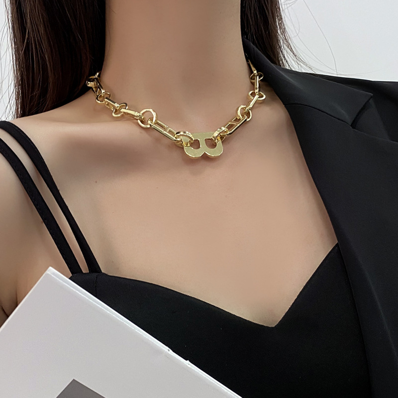 b letter thick chain gold