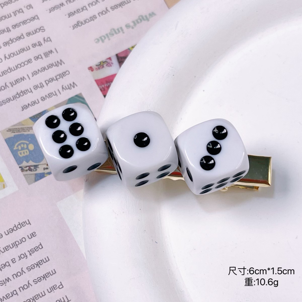 white dice barrettes [three heads]]