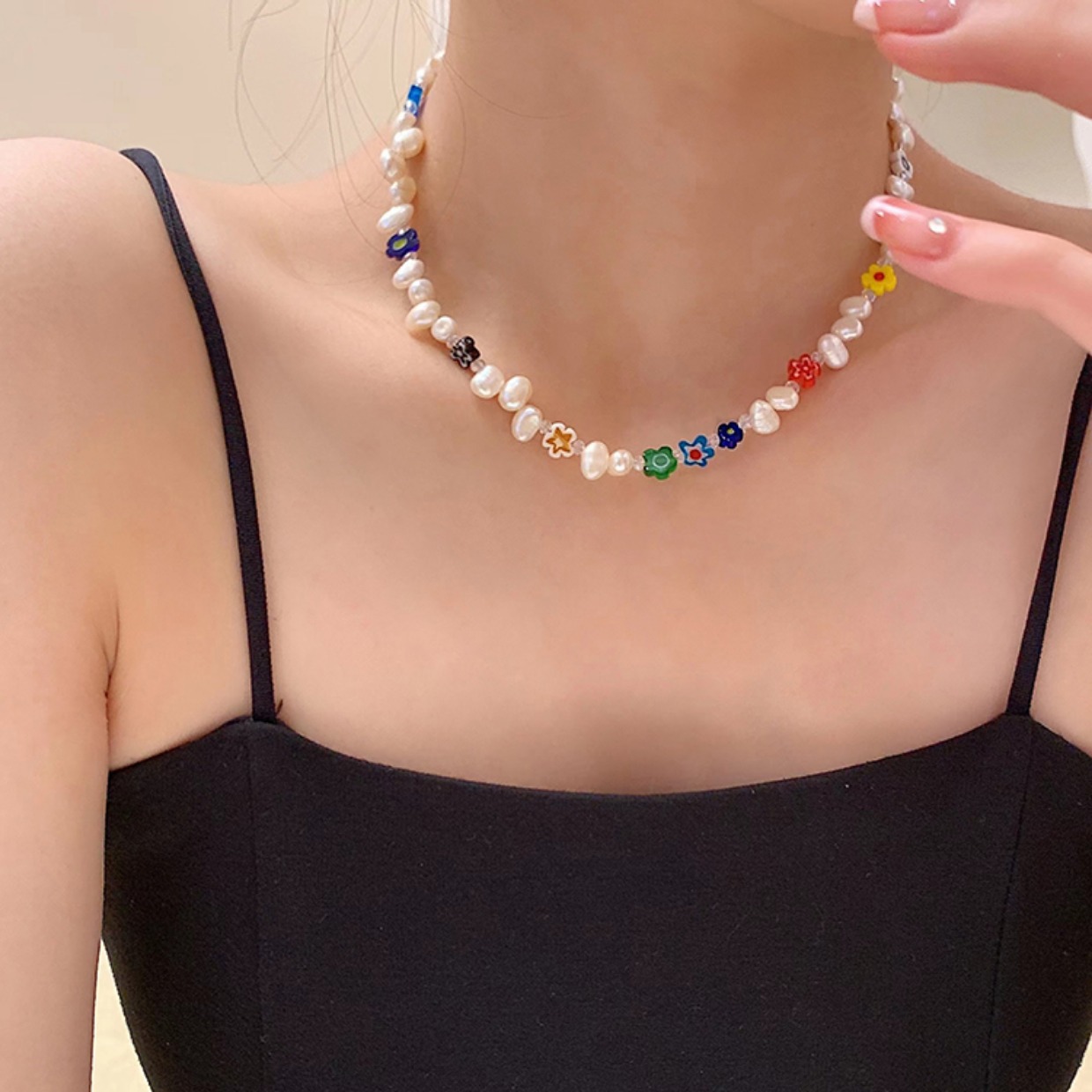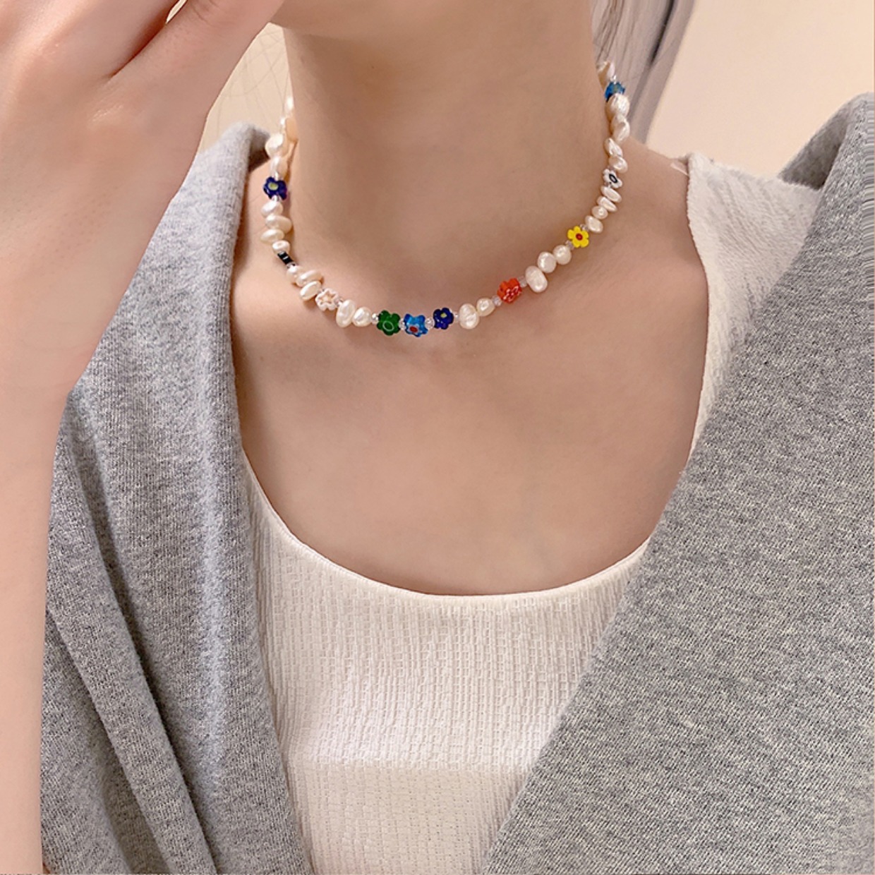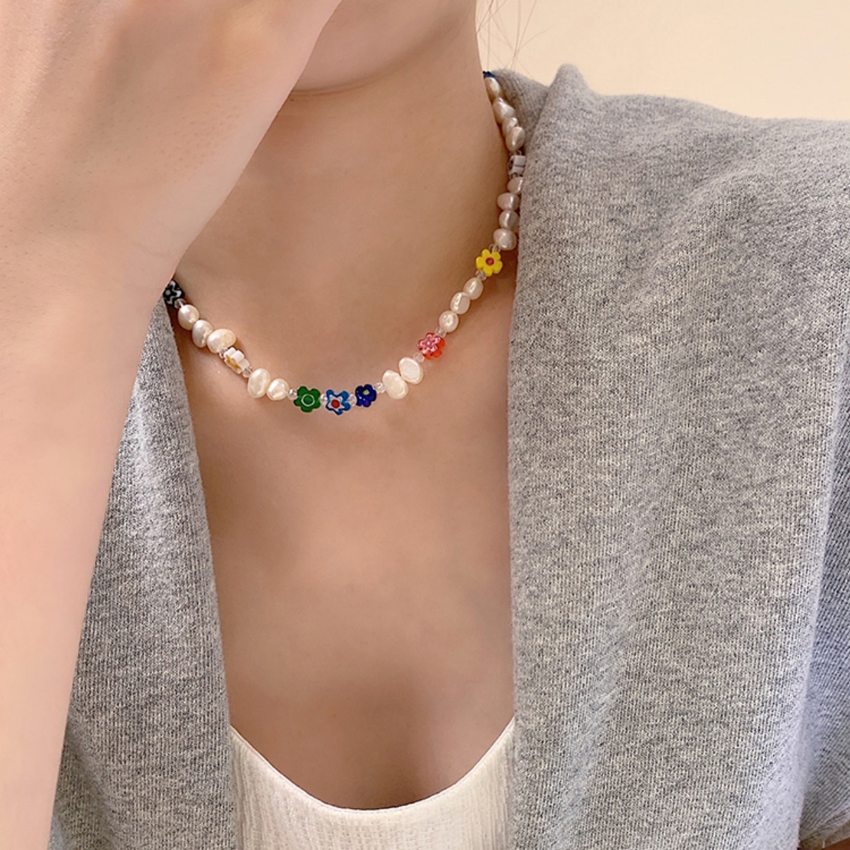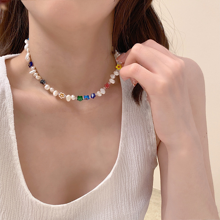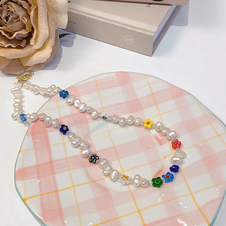freshwater pearl flower necklace