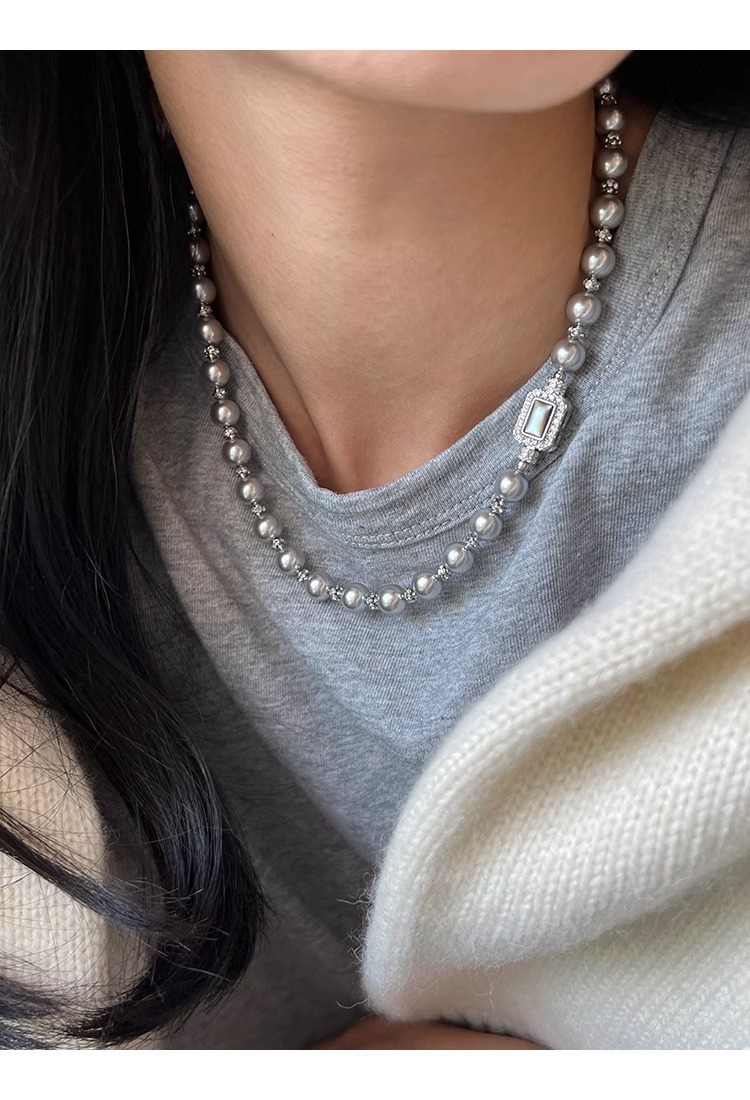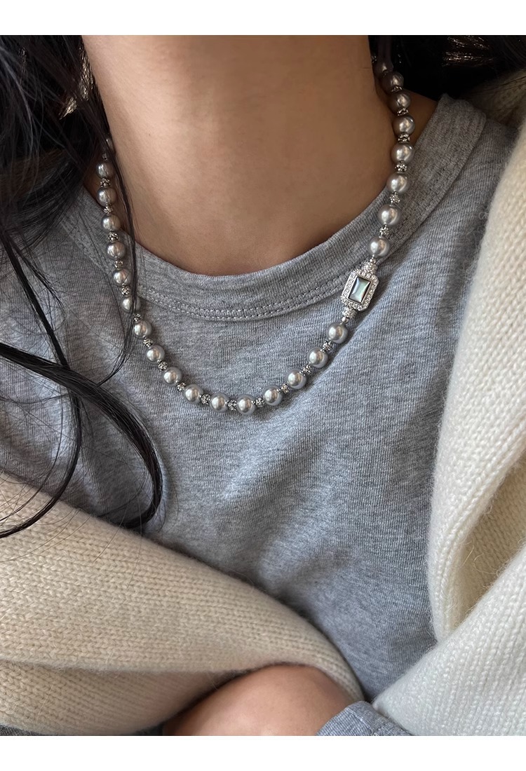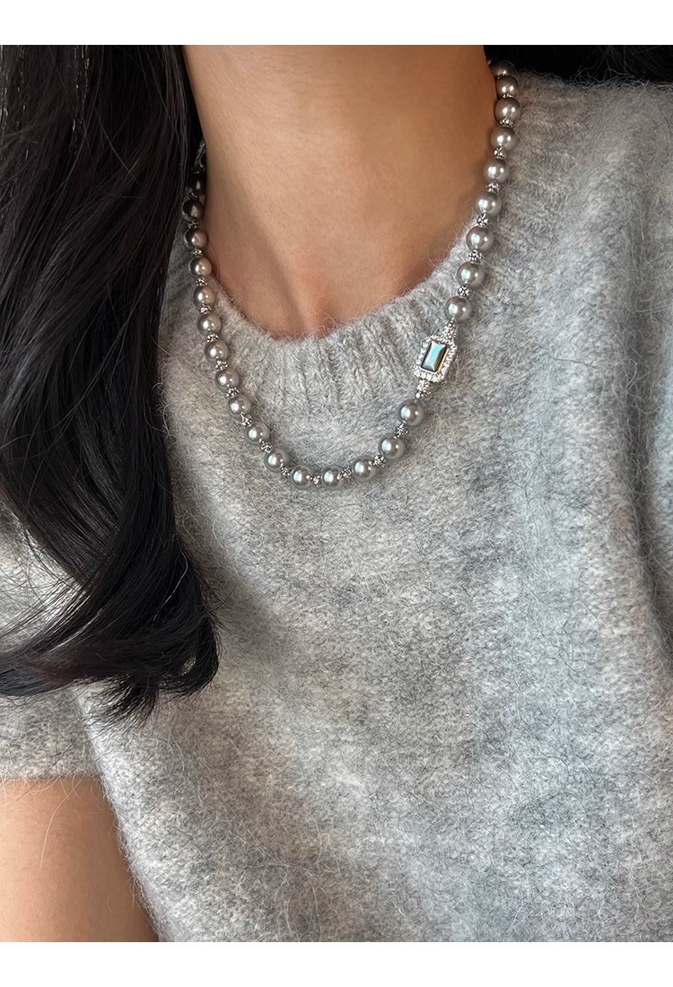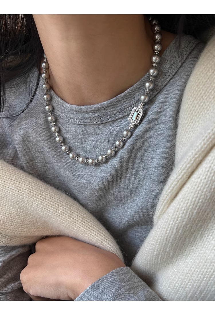 fritillary treasure chest buckle silver gray shijia pearl necklace
