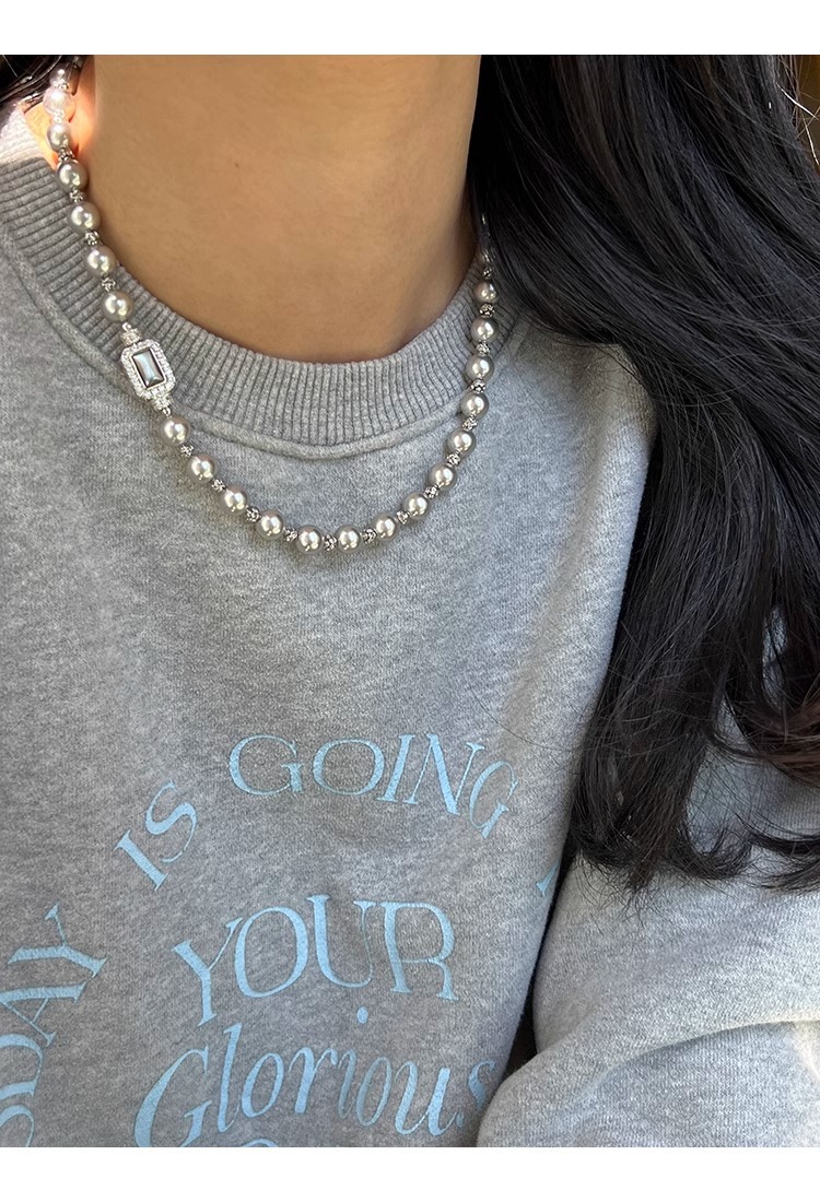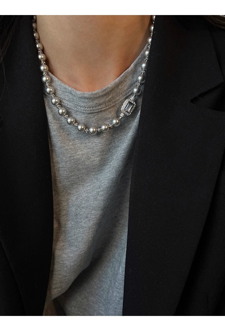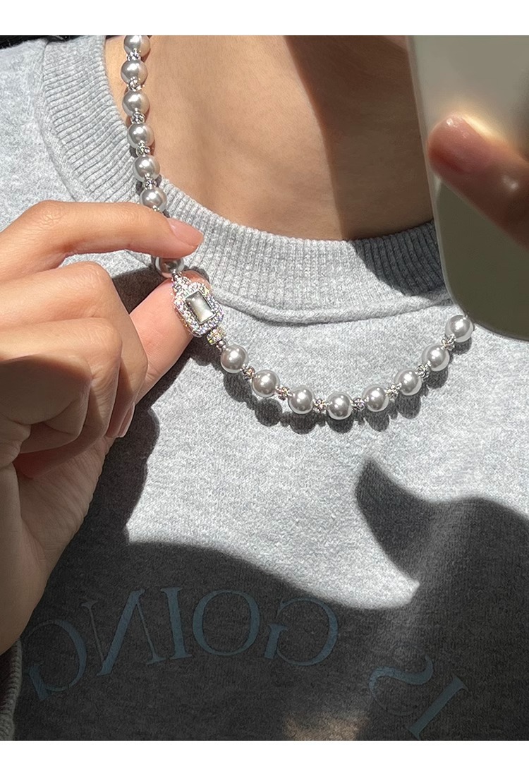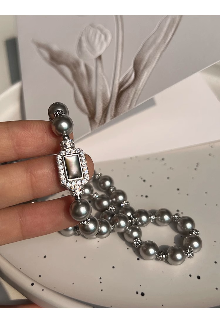 fritillary treasure chest buckle silver gray shijia pearl necklace