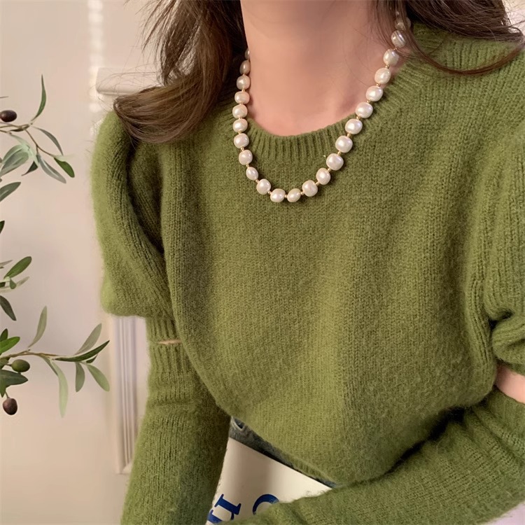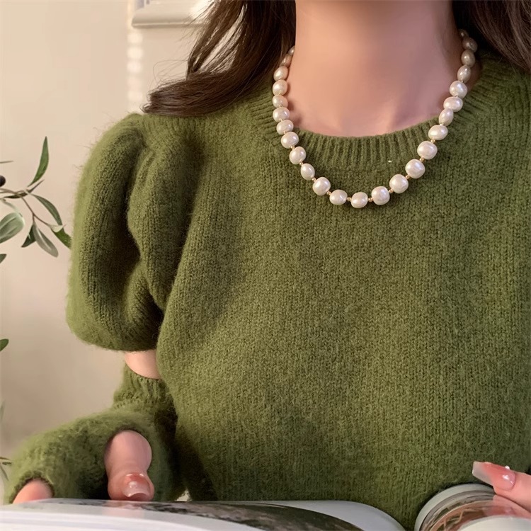 oval egg-shaped big pearl ot buckle necklace