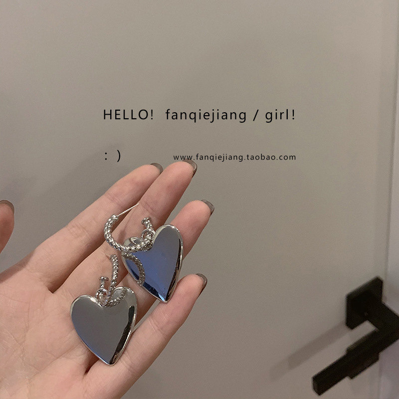 silver-vintage large love heart earrings