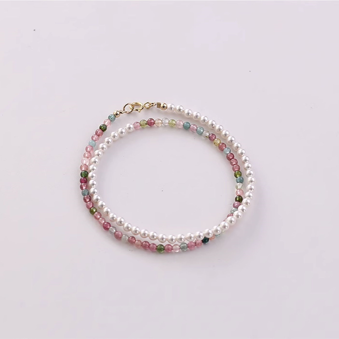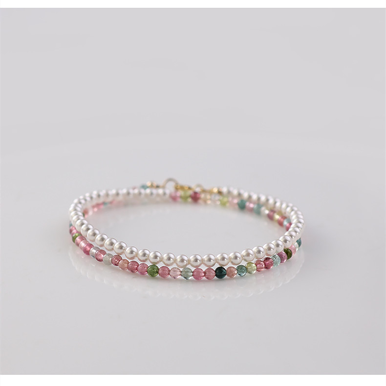 shell pearls tourmaline stitching bracelet