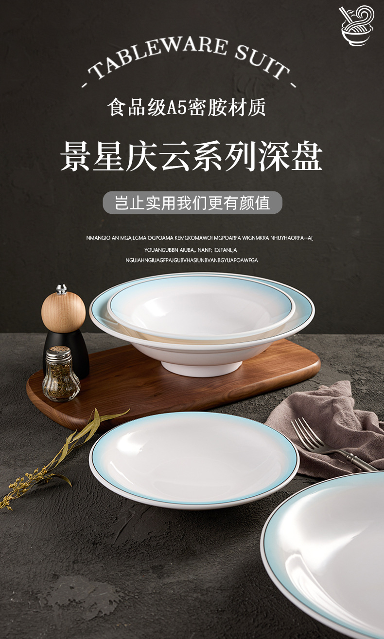 food grade melamine deep plates hotel boiled fish with pickled cabbage and chili plate commercial plastic dish imitation porcelain tableware factory wholesale