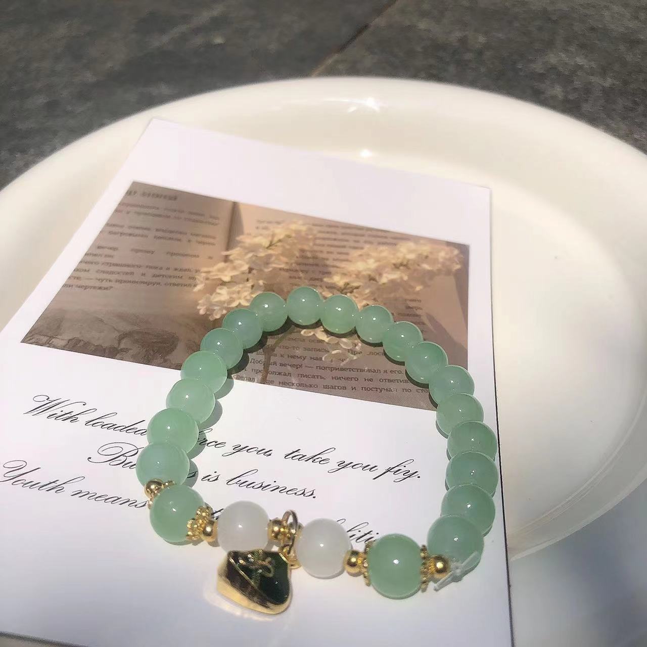 s480 light green glass chipping beads lily bracelet