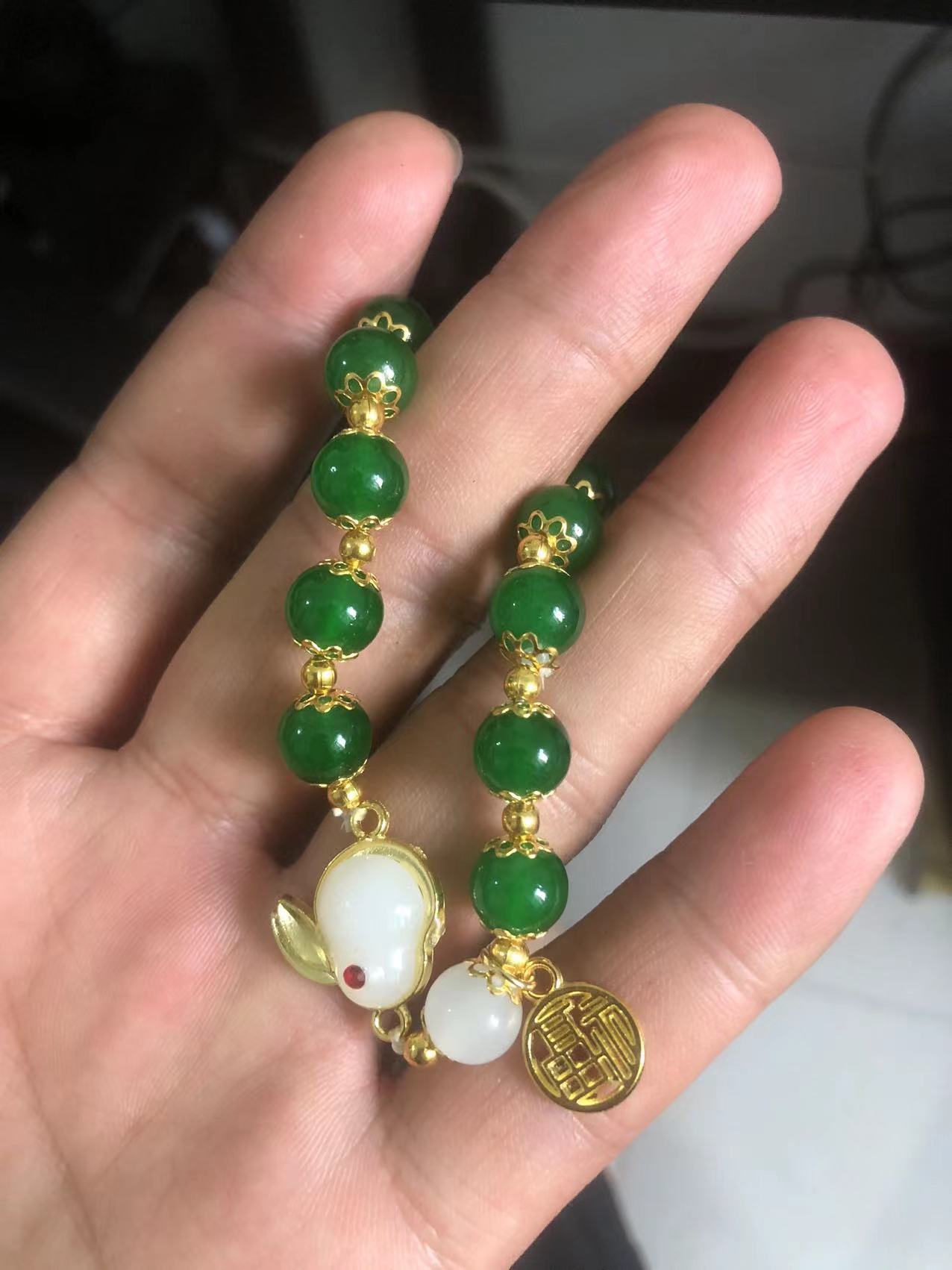 s35 emerald green blessing card jade hare bracelet