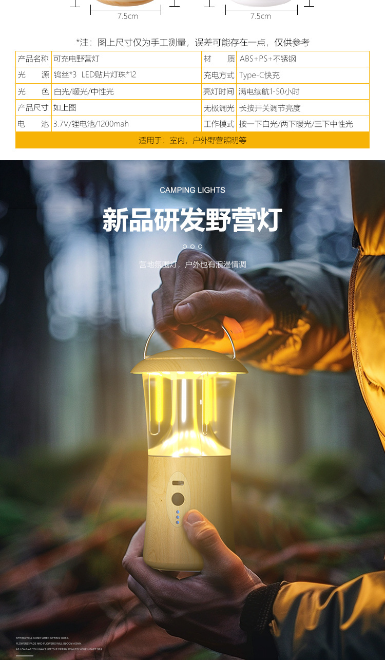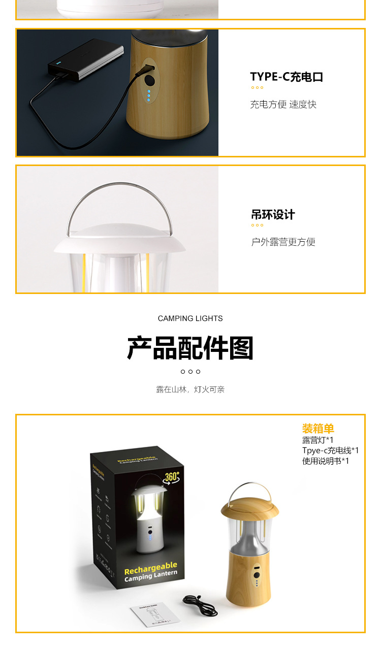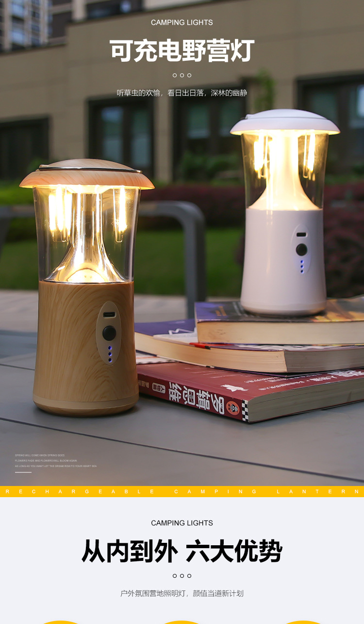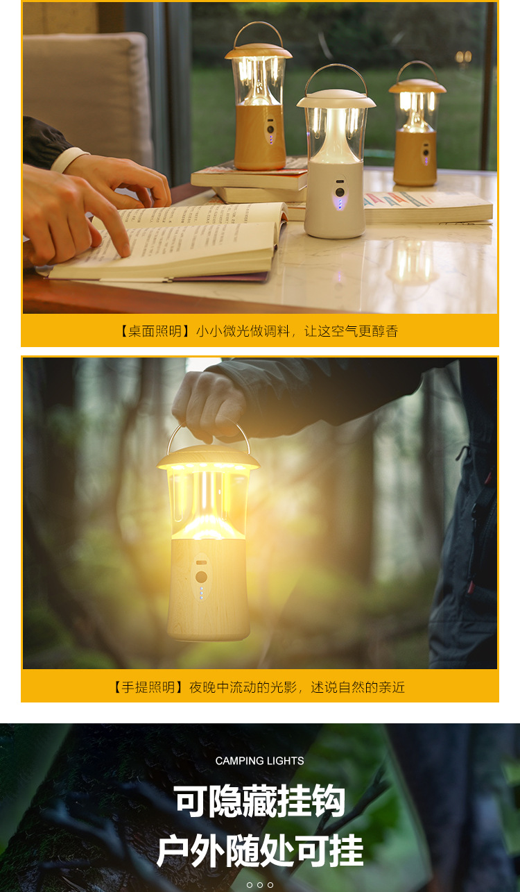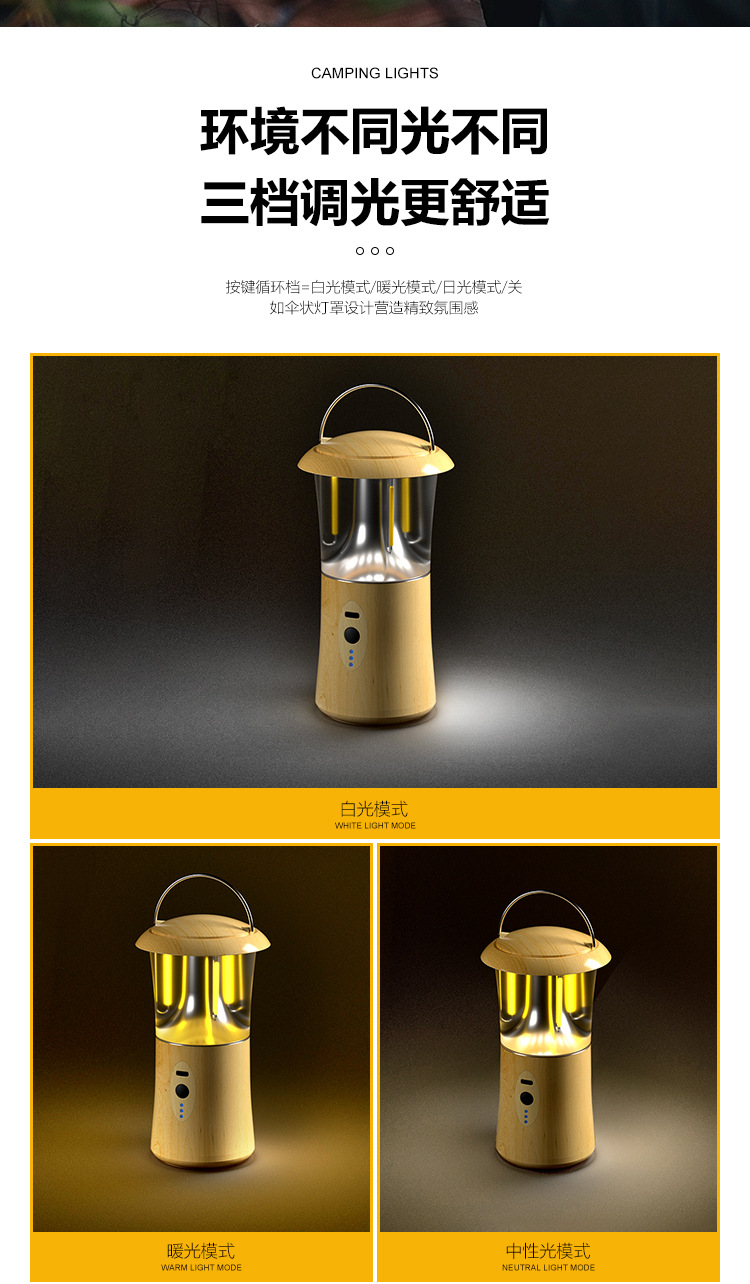 wood grain portable camping lantern [three colors + dimming]