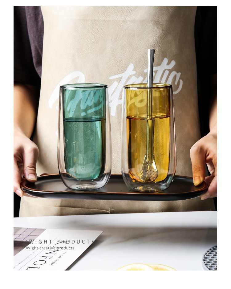 double insulation green-tea cup coffee cup ins style home living room drinking cup straight caterpillar color double layer