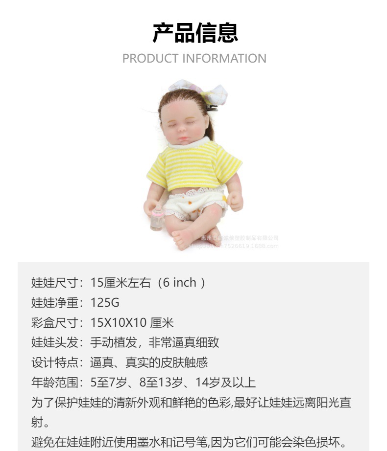 6-inch solid silicone reborn doll training teaching model simulation baby sleep toys for babies and children
