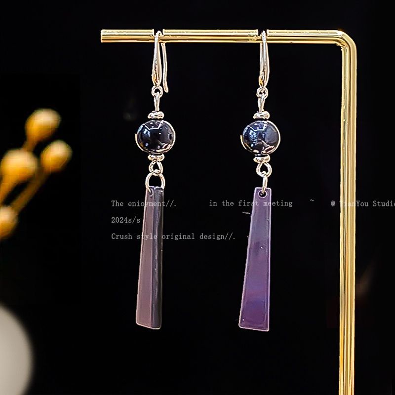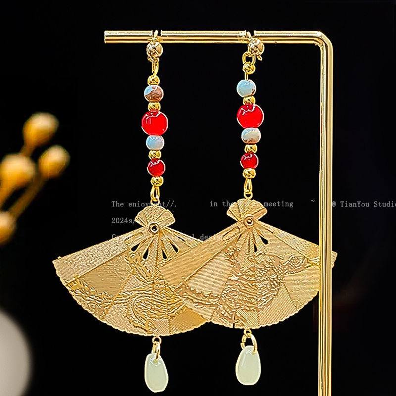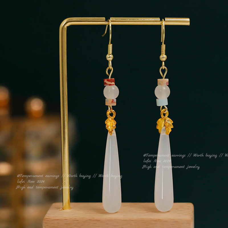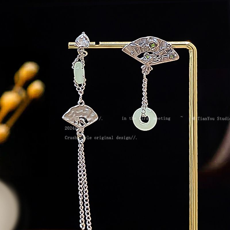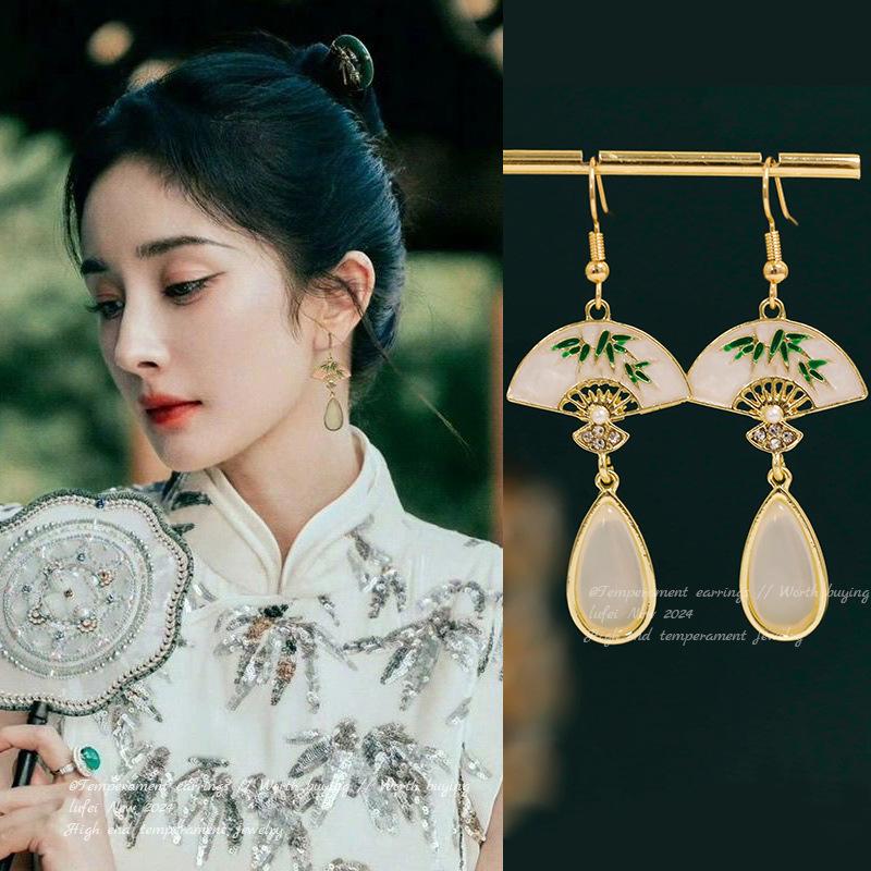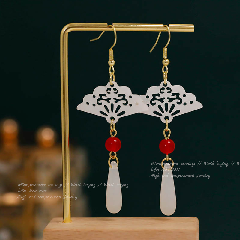 9# new chinese fan water drop jade ear hook