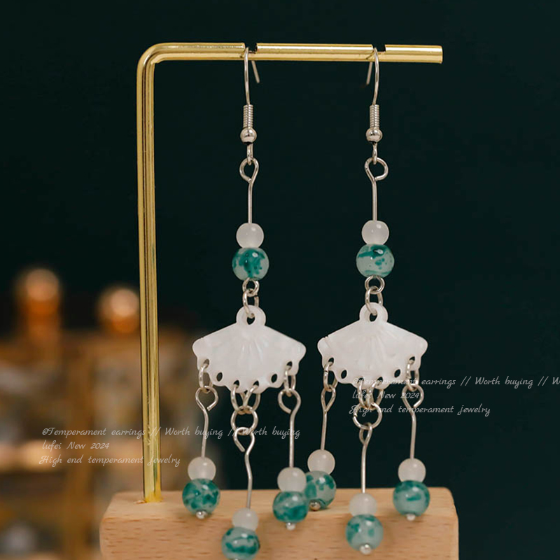 21# bamboo fan-shaped long tassel ear hook