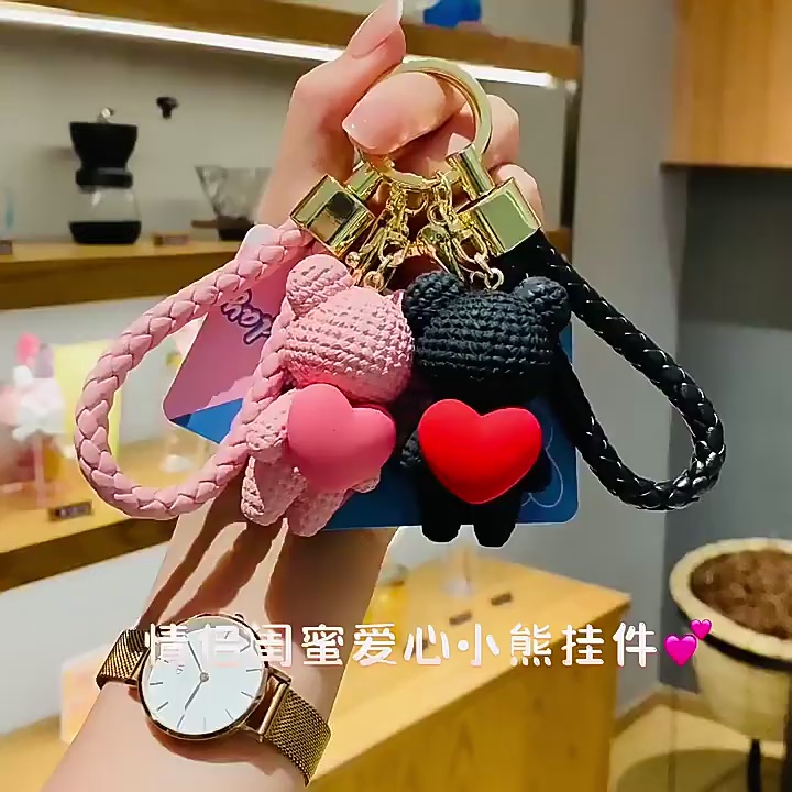 hug peach heart woven bear-black